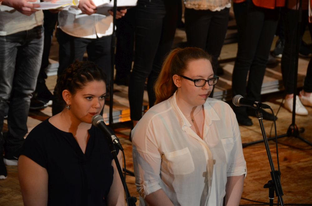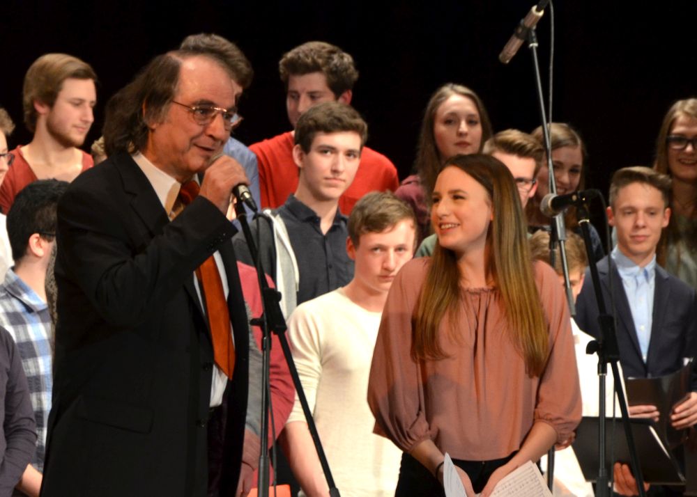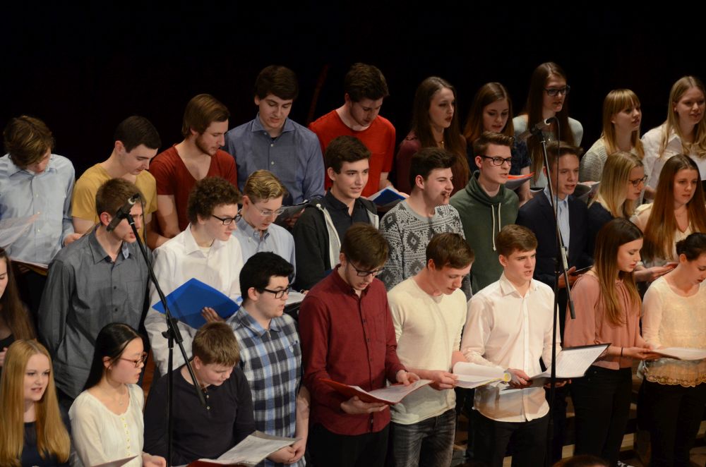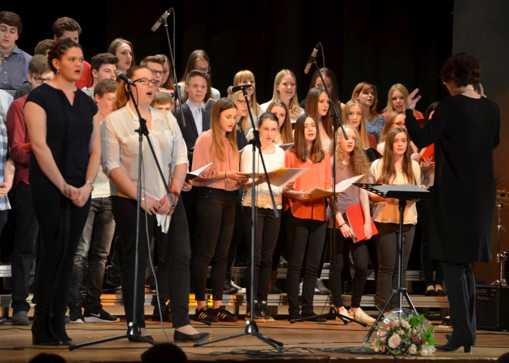 Den zweiten Teil des Musikabends eröffnete der Chor der Klassen 8-13. Dass auch Schülerinnen und Schüler der MSS 13, eigentlich vom Schulbesuch bereits befreit, in großer Zahl anwesend waren, ist ein besonderes Lob wert. Der stark besetzte Chor zog vor allem mit teils gefühlvollen, teils humoristischen Soli das Publikum in seinen Bann.