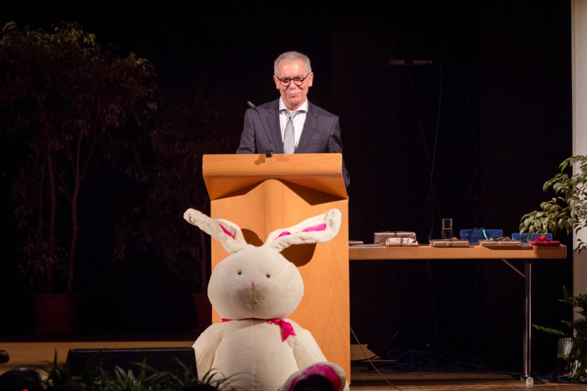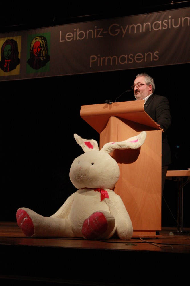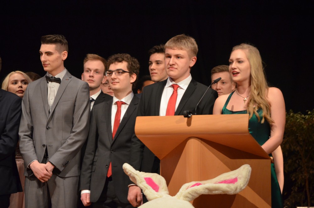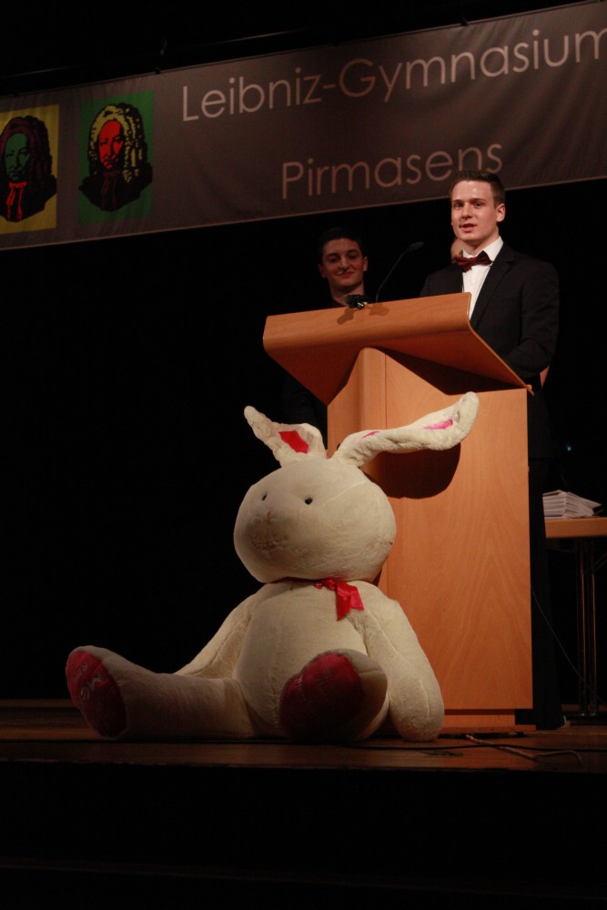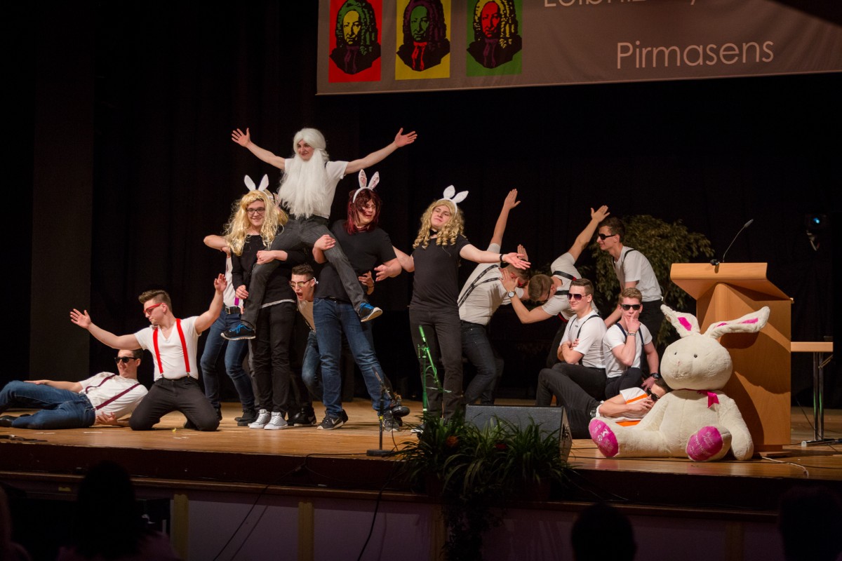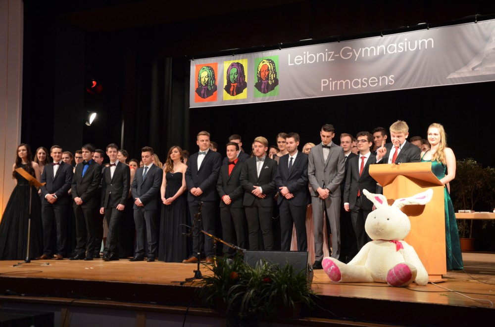 Am 25.03.17 konnte das Leibniz wieder einen erfolgreichen Abiturjahrgang verabschieden. Erfolgreich war dieser gleich in mehrfacher Hinsicht: Wieder haben alle angetretenen Schülerinnen und Schüler das Abitur bestanden und mit einem Schnitt von 1,0 konnte ein Schüler (Eric Bahne) sogar die höchstmögliche Note erzielen. Erfolgreich präsentierte sich der Jahrgang auch als Gruppe; der von den Rednern beschriebene Zusammenhalt war sowohl in der Vorbereitung als genauso im offiziellen und inoffiziellen Programm des Abends spürbar. Erfolgreich waren die Abiturient(inn)en auch in den vielen Neuerungen, die ihre Schulzeit prägten und die sich im Abimotto ("Rab(b)its - die Versuchskaninchen brechen aus") niederschlugen.