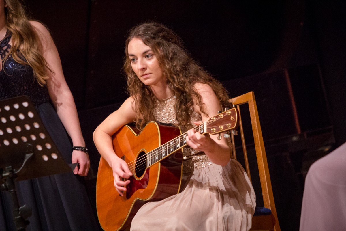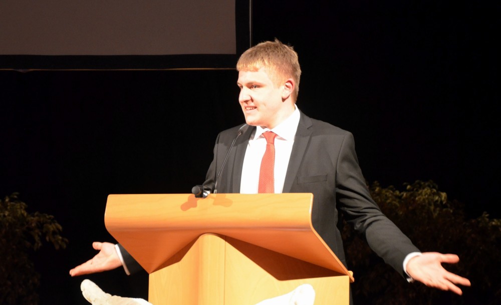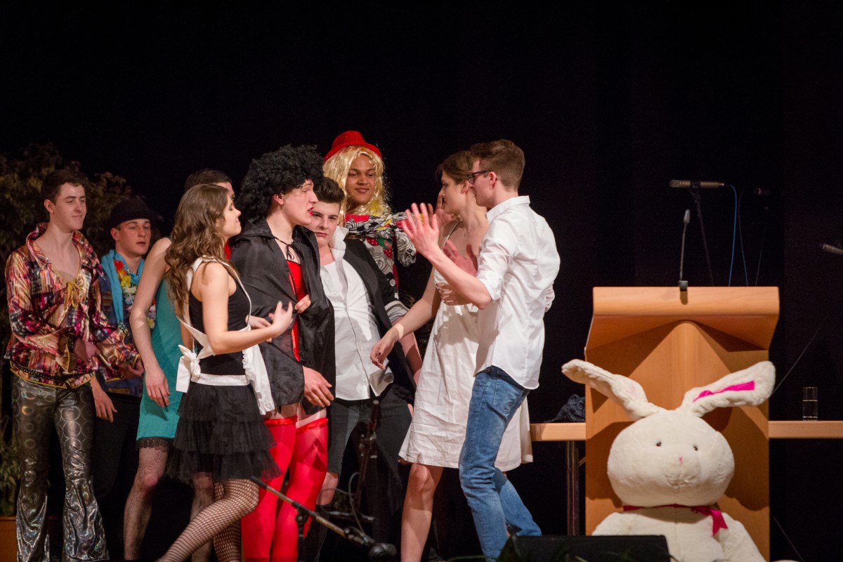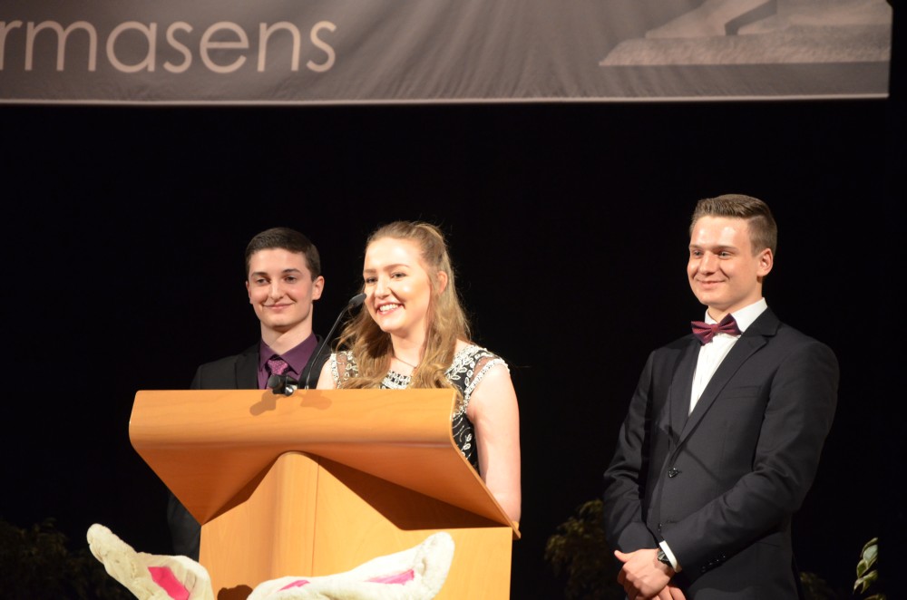 Die Stufe präsentierte sich den ganzen Abend souverän: Angefangen von der lockeren Moderation durch Mareike Luppa und Eric Bahne, über die solistischen Beiträge von Joel Sutter am Klavier und Daniela Wüstenmann an der Klarinette bis hin zum Poetry Slam von Rebecca Mohr. Lara Henkel, Marc Bachmann und Xaver Rößler ließen in ihrer kurzweiligen Abiturrede erkennen, dass der Jahrgang ein sehr positives Bild ihrer Schulzeit in Erinnerung behält und schon ein wenig wehmütig Abschied nimmt.