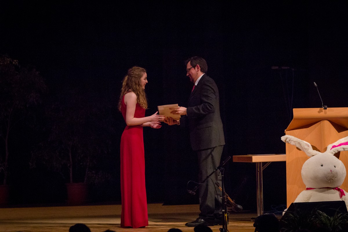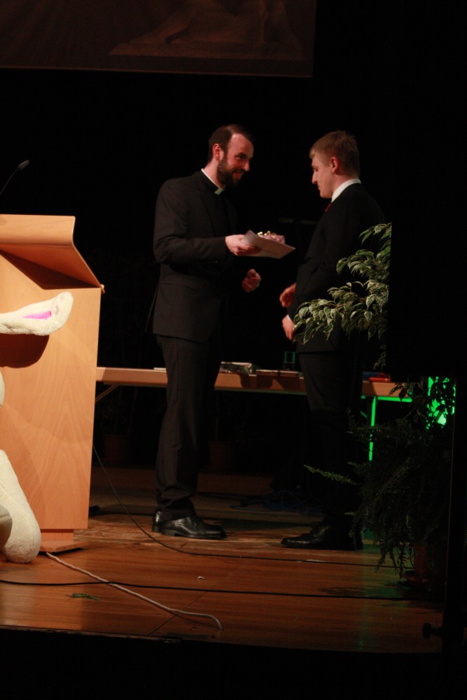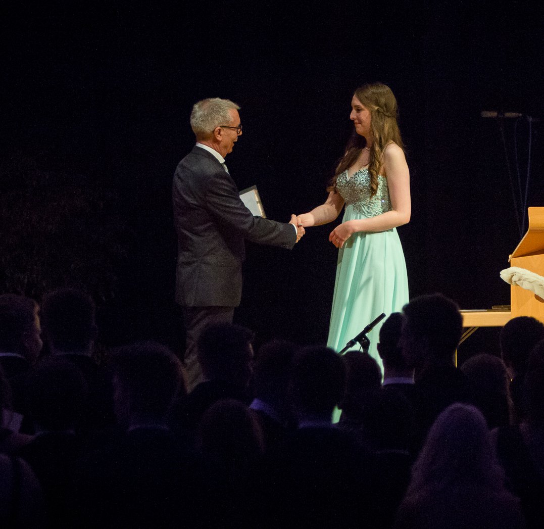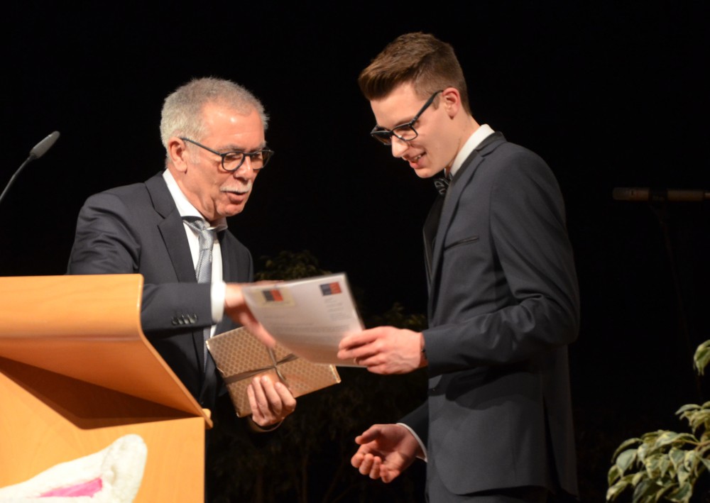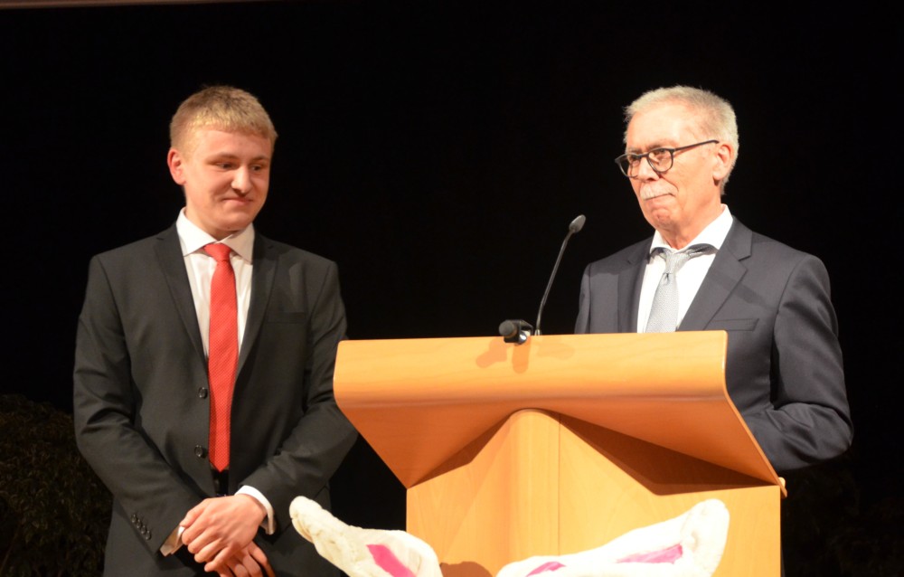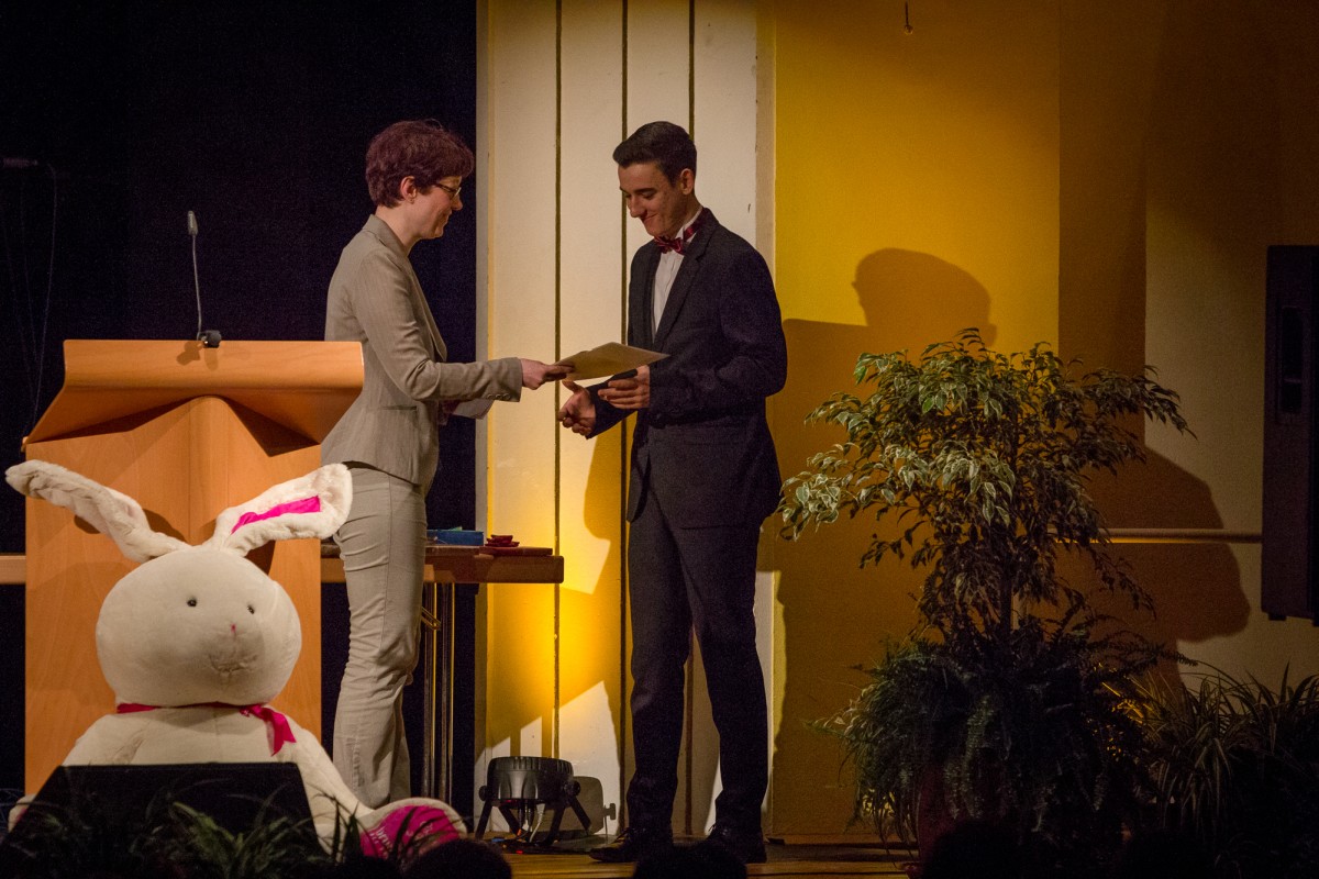Viele Preise konnten vergeben werden und vergleichsweise viele unterschiedliche Preisträger konnten sich über diese freuen. Wir sind sehr dankbar, dass sich wie jedes Jahr etliche Sponsoren fanden, die Preise gestiftet haben und die diese teilweise auch selbst überbrachten. Und auch dabei gab es eine Premiere mit dem ersten Preis der Fa. convar für einen Absolventen im Leistungskurs Informatik, der mit Nicolas Faroß einen würdigen Abnehmer fand.