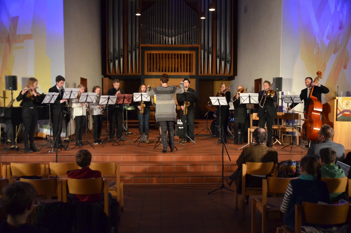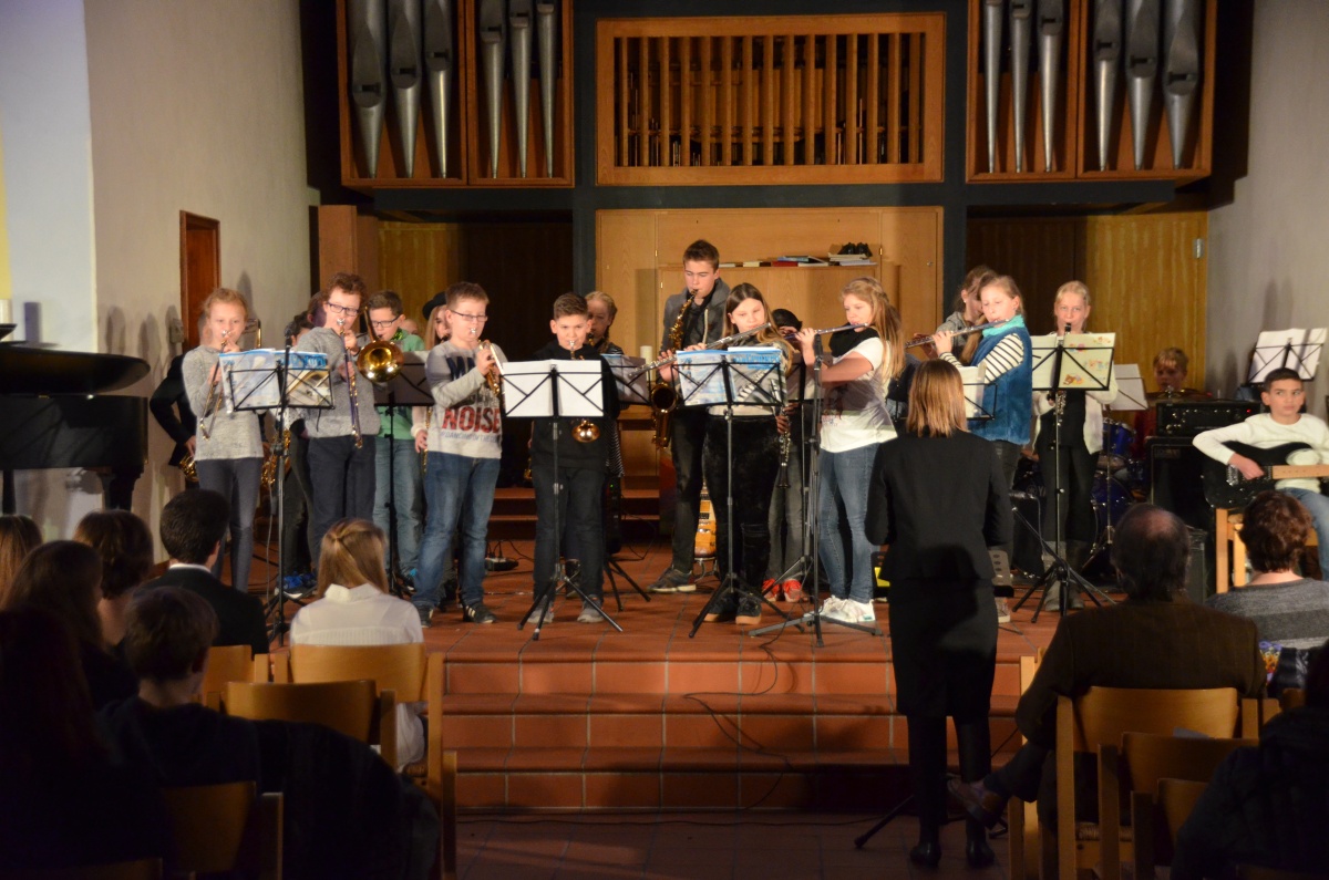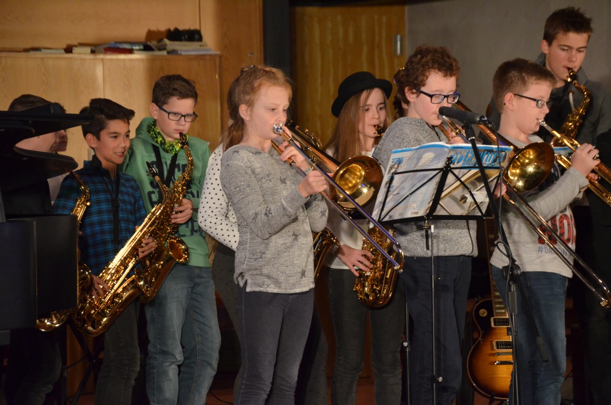 In der ersten Konzerthälfte hatte auch die Bigbandklasse ihren großen Auftritt: Beeindruckend zeigten sich die Fortschritte der Jungmusiker besonders in den Solo-Passagen der Stücke „C-Jam Blues“ und „Good Time“.