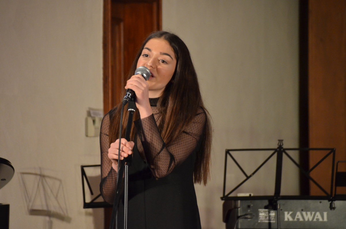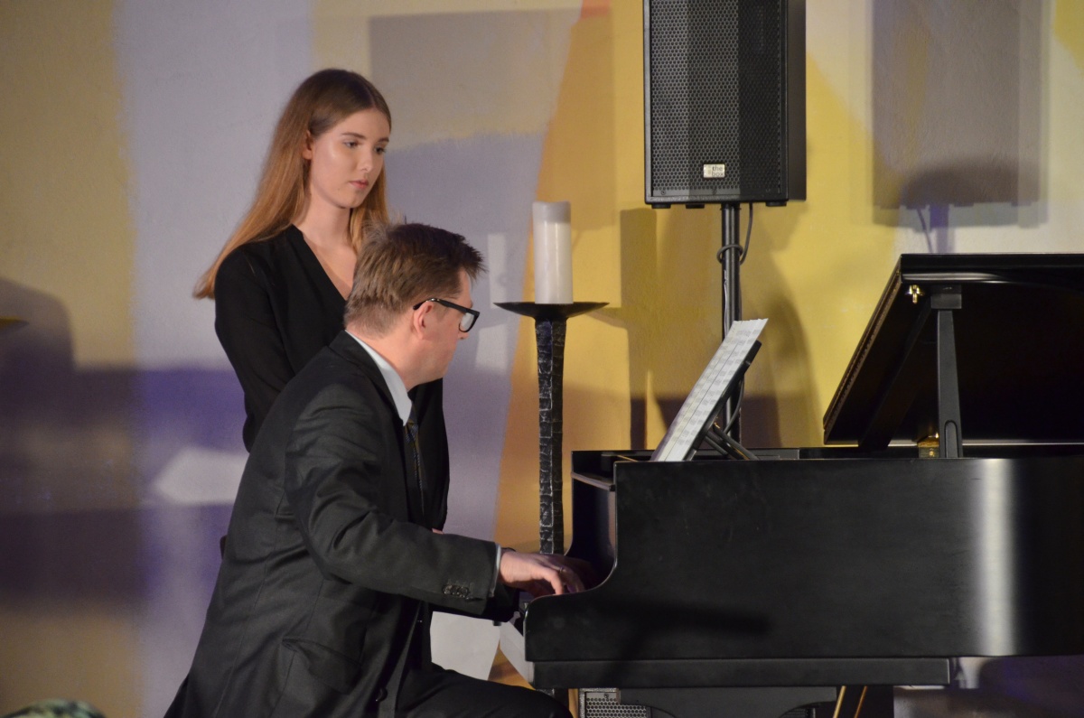 Zwischen den Ensembles präsentierte sich Ariane Shirkhani sowohl klassisch am Flügel mit einem Impromptu von Franz Schubert als auch modern am Gesang, begleitet von Herrn Dr. Lingenberg, mit der Pop-Ballade Handwritten.