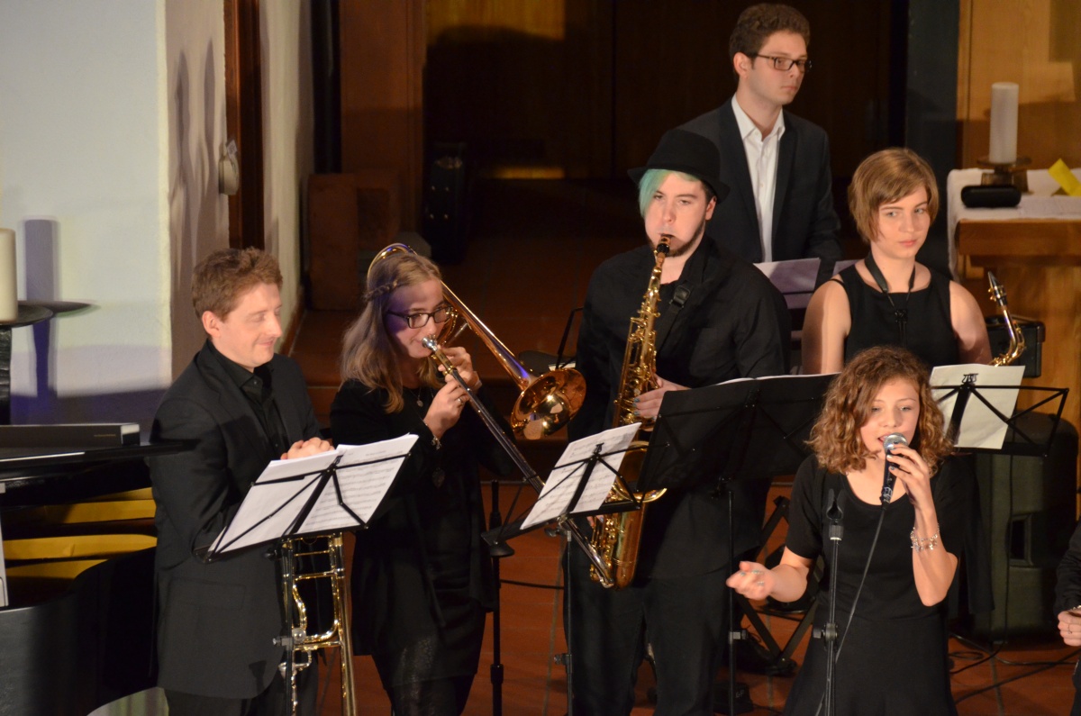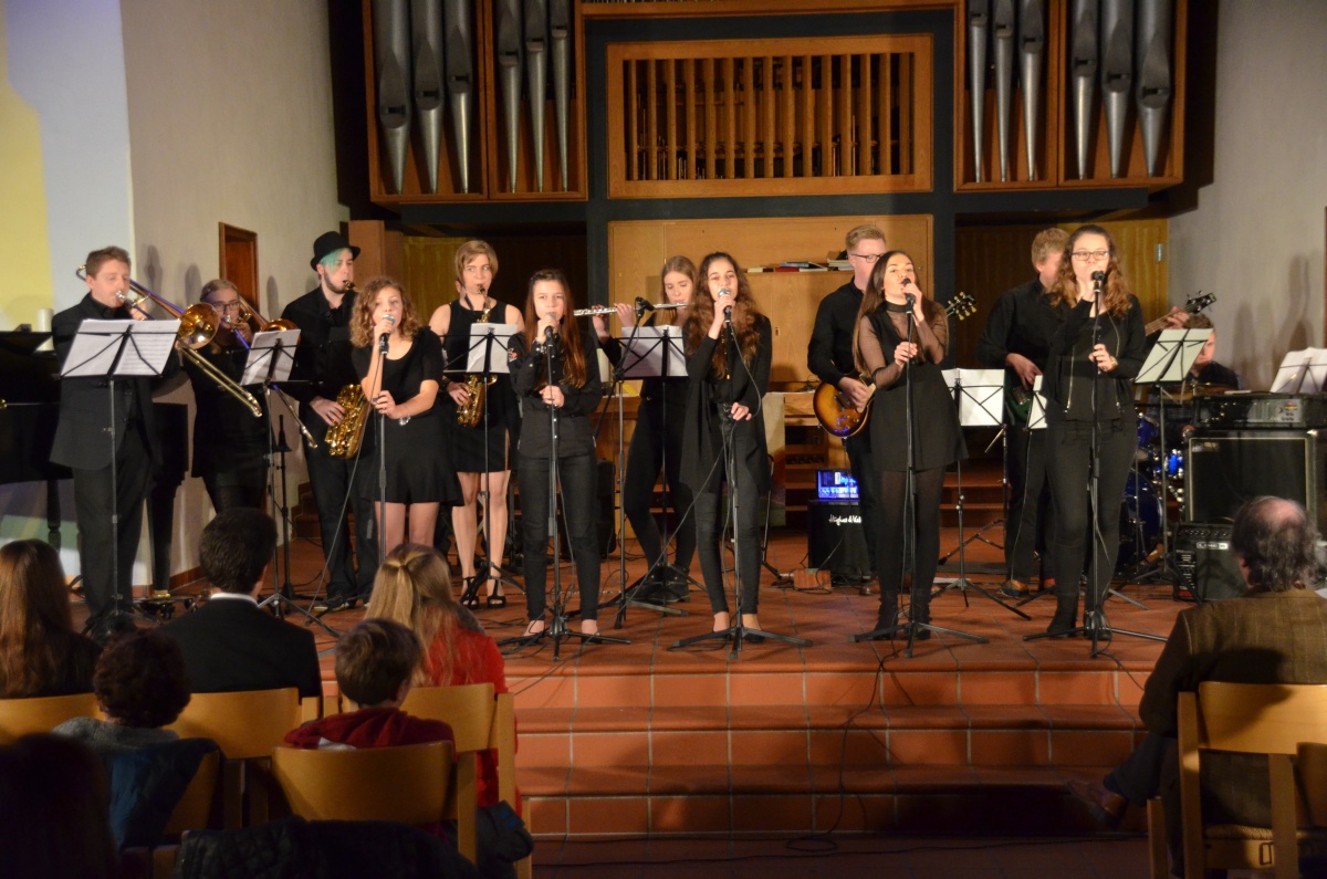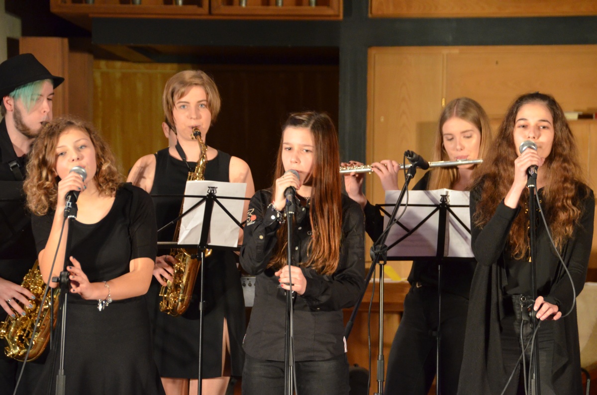 Einen jazzigen Schlusspunkt setzte Schulband LGProject mit den Nummern „Song for my father“, “Cantaloupe Island”, „Something got a hold on me“ und „At last“. Auch hier brillierten neben der gekonnt-groovenden Rhythmusgruppe die Gesangs- und Instrumentalsolisten.