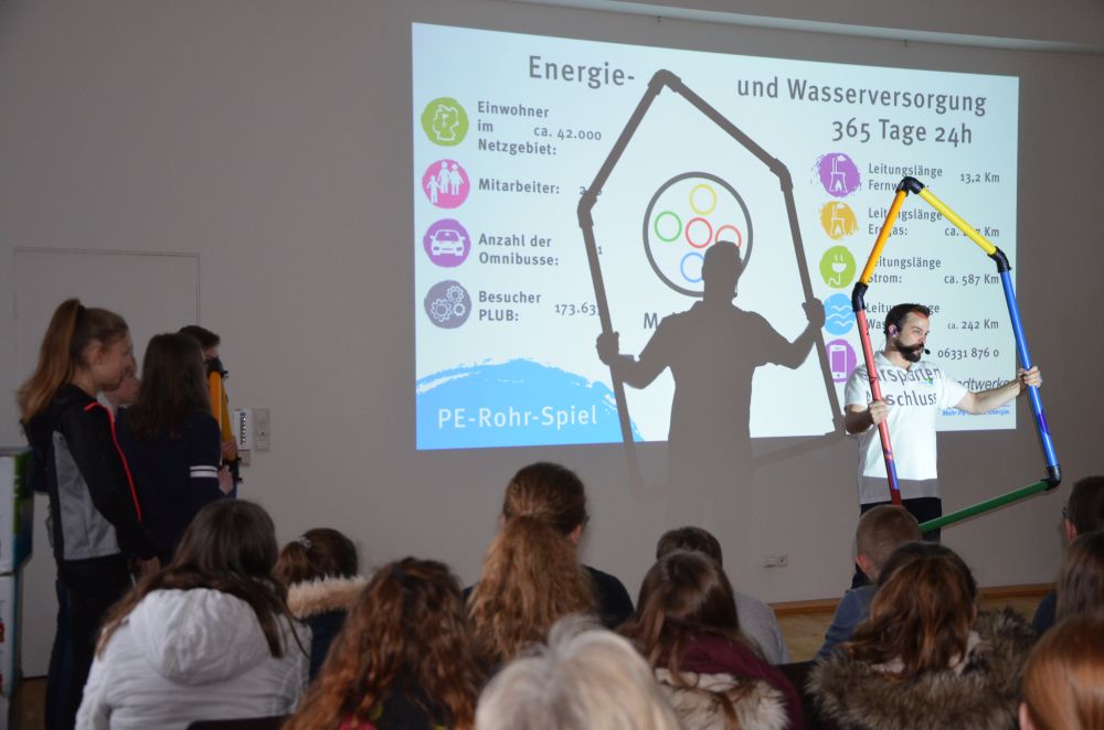 Im Rahmen des „Sonnendiploms" - ein mehrteiliges Bildungsprojekt zum Thema Umweltschutz und Umweltbewusstsein - boten die Stadtwerke Pirmasens in Zusammenarbeit mit dem „Pakt für Pirmasens" eine 90-minütige Informationsveranstaltung an. Alle 7. Klassen besuchten am Donnerstag, den 30.11. dieses „Lernerlebnis Energiewende".