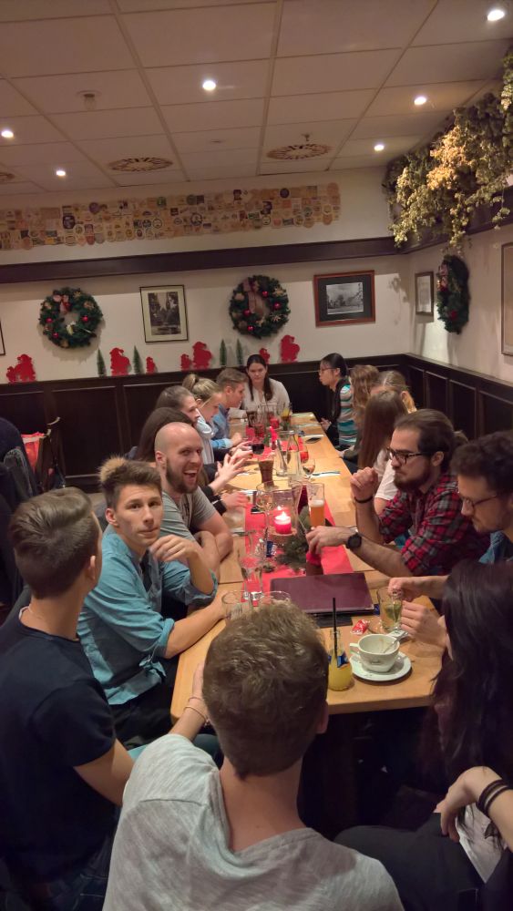 Am 27.12.2017, dem „3. Weihnachtsfeiertag", fand das Treffen der ehemaligen Schüler des Leibniz-Gymnasiums statt. Wie es inzwischen zu einer schönen Tradition geworden ist, trafen sich die Ehemaligen verschiedener Abiturjahrgänge (dieses Mal 1975-2017) im Nebenzimmer von Kuchems Brauhaus. Die Resonanz war auch in diesem Jahr so beachtlich, dass die dort reservierten Plätze gar nicht ausreichten und „angebaut" werden musste.
