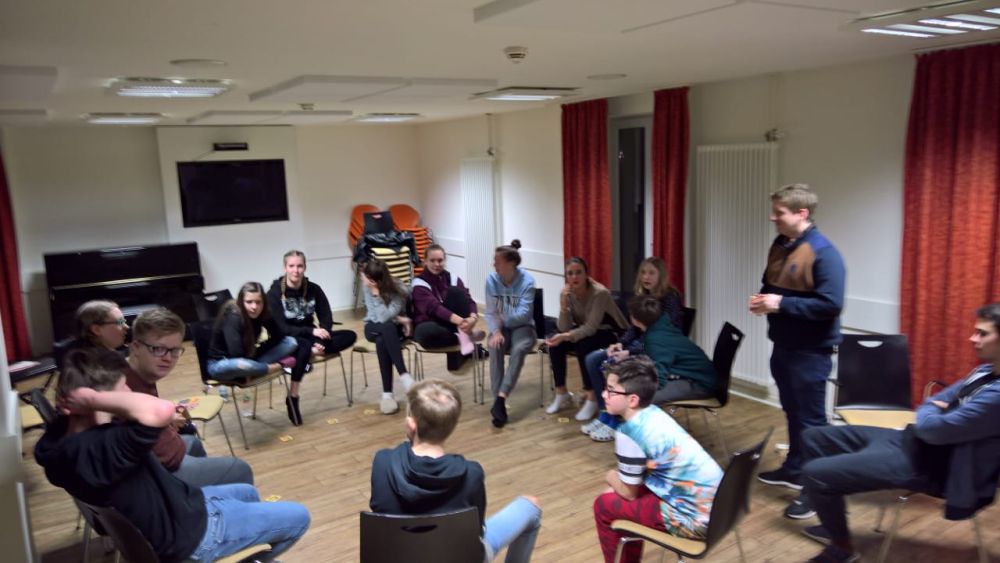 Am Abend wurden dann, wie üblich, die Instrumente weg- und die Gesellschaftsspiele ausgepackt. Nach der Eröffnung "Es wird Nacht im Pfälzer Wald. Das Dorf schläft ein." entspannen sich wieder aufregende Geschichten, bei denen spielerisch Überzeugungskraft und Kommunikationsfähigkeit trainiert werden.
