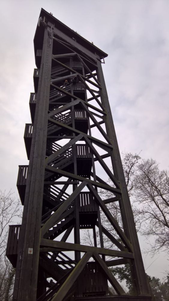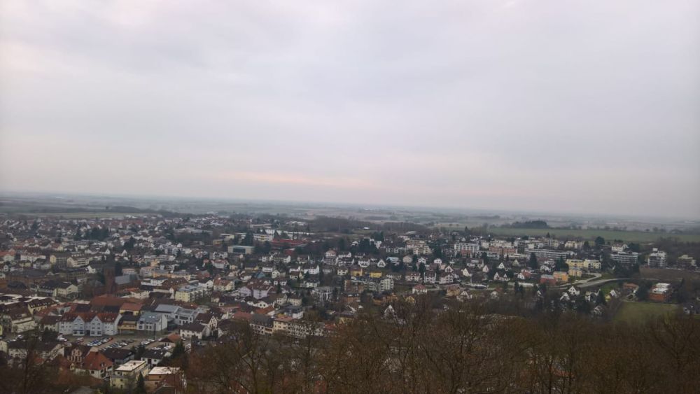 Da das Bad Bergzaberner Café Herzog dienstags geschlossen hat, musste der traditionelle Café-Besuch inklusive heißer Schokolade mit anschließendem Stadtbummel dieses Jahr einer nicht minder ansprechenden Wandertour weichen. Bei trockenem, nicht allzu windigem Wetter wagten wir durch die Weinberge hindurch vorbei an der Villa Pistoria und der Villa Zickzack den Aufstieg auf den Liebfrauenberg. Oben angekommen fassten sich die meisten ein Herz und erklommen zusätzlich noch die 154 Stufen zur Aussichtsplattform des fast 30 Meter hohen Bismarckturms. Doch nicht umsonst: Am Ende des Aufstiegs wurde man mit einem sensationellen Panoramablick über Bad Bergzabern, die Rheinebene und den Pfälzer Wald belohnt.
