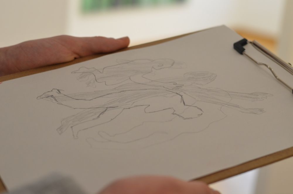 Zum Abschluss der aufschlussreichen Führung von Denise Kamm durften die interessierten Besucher selbst die Bleistifte schwingen und sich an Form und Ordnungsprinzipien wagen.