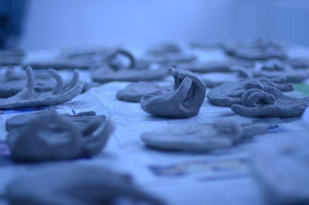 Seit einigen Wochen schon sind die 9. Klassen im Bereich der Plastik zu Hause: Nach Werkbetrachtungen diverser Art (Naumann, Rodin u. a.) modellieren sie nun ihre eigenen Gesten und Handzeichen. Das Modellieren ist eine echte Herausforderung und die Ergebnisse lassen sich sehen!