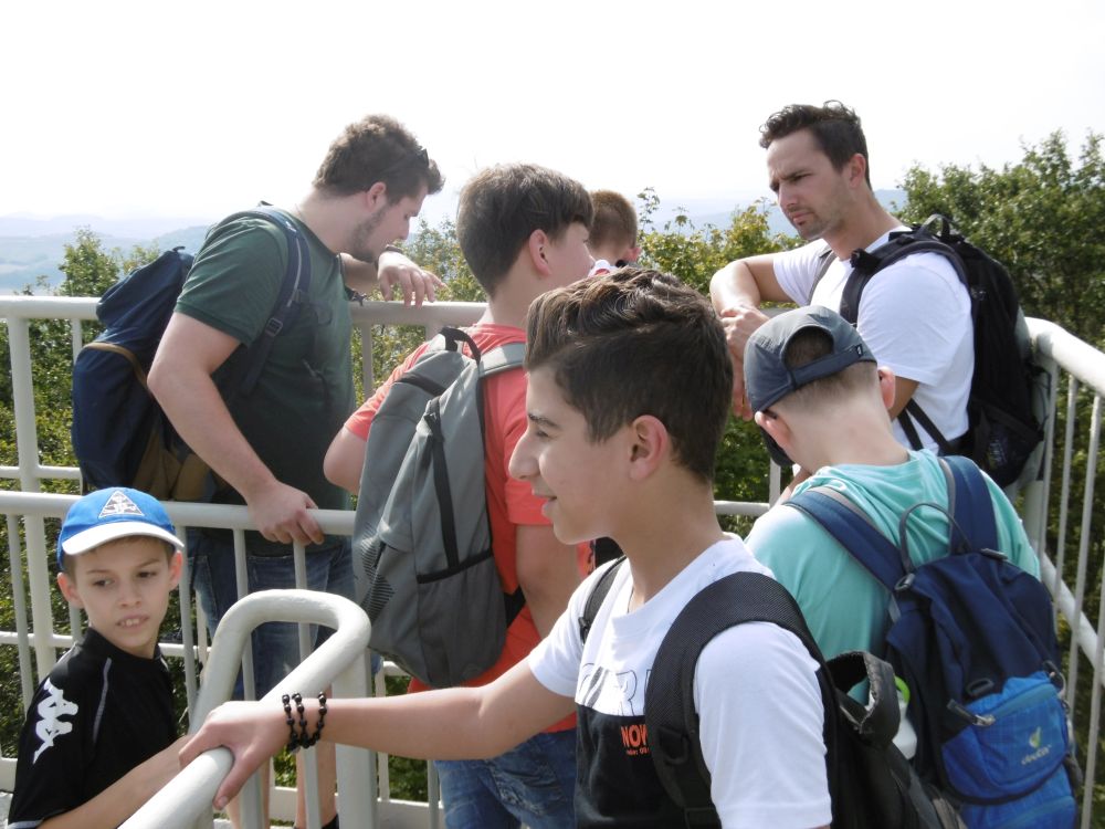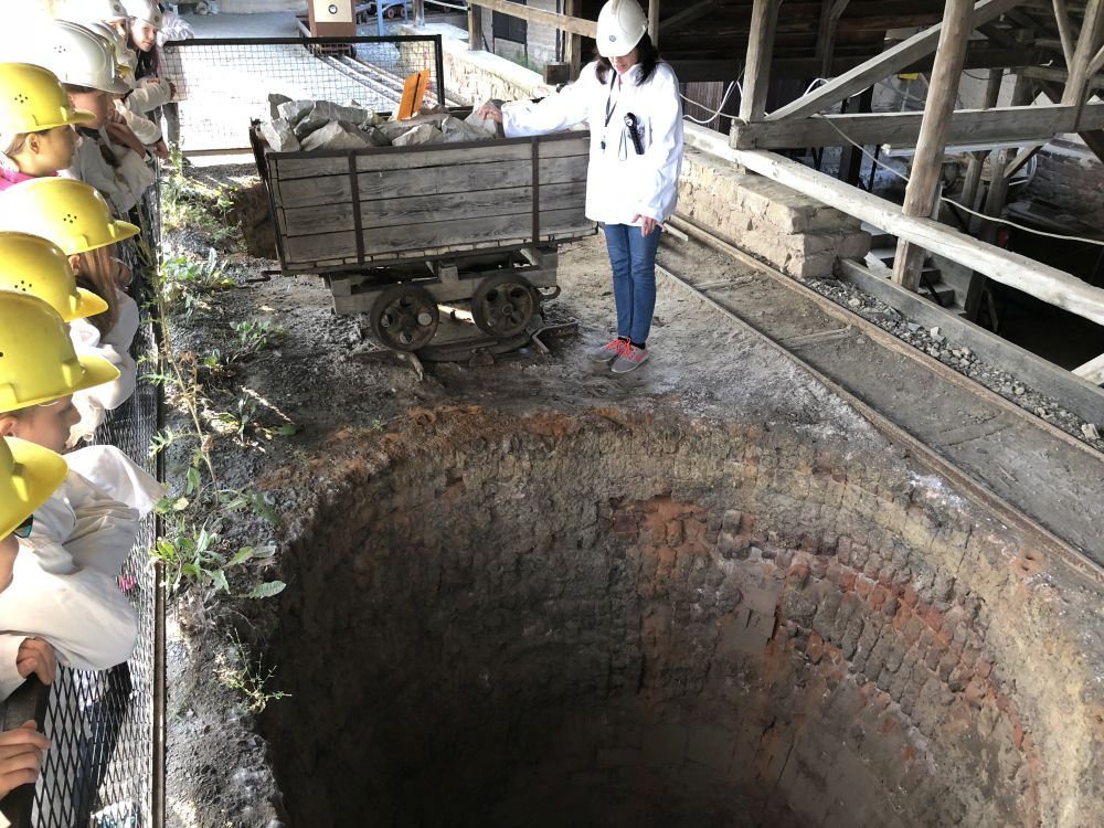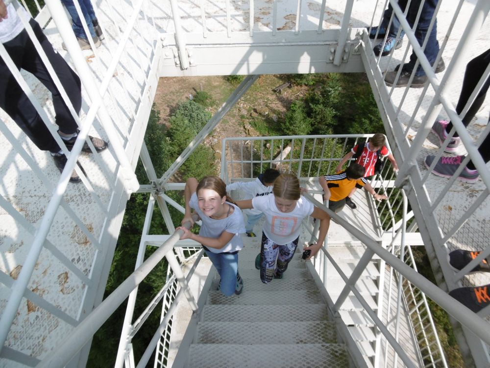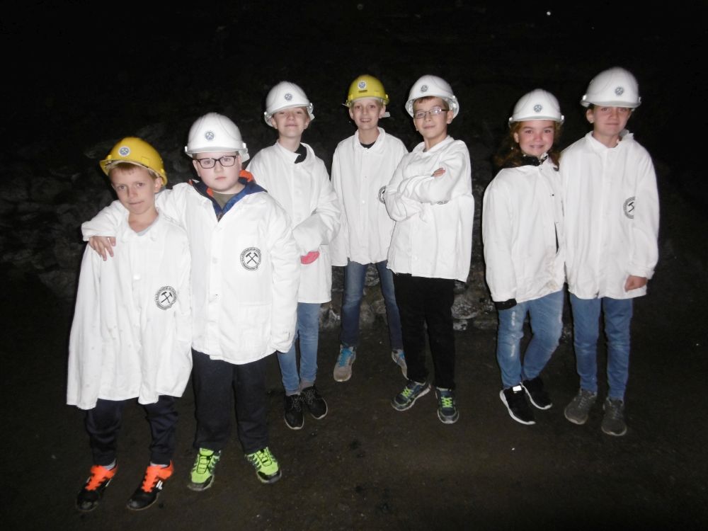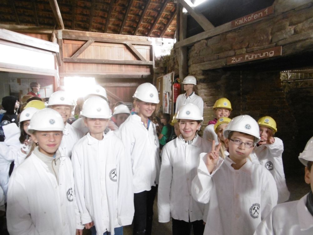 Das Wetter zeigte sich am ersten Tag von seiner sommerlichsten Seite, so dass wir bei der Wanderung zum Aussichtsturm auf dem Selberg keinen Regen befürchten mussten. Auch das Kalkbergwerk am nächsten Morgen wurde trockenen Fußes erreicht. Nach der obligatorischen Fahrt mit der Grubenbahn erfuhren wir viel über die Arbeitsweise im Stollen. Die Schülerinnen und Schüler verfolgten aufmerksam die Erklärungen zum Abbau und der Verarbeitung des Kalksteins und stellten dann auch fest: "So viel Arbeit für so wenig Geld!"