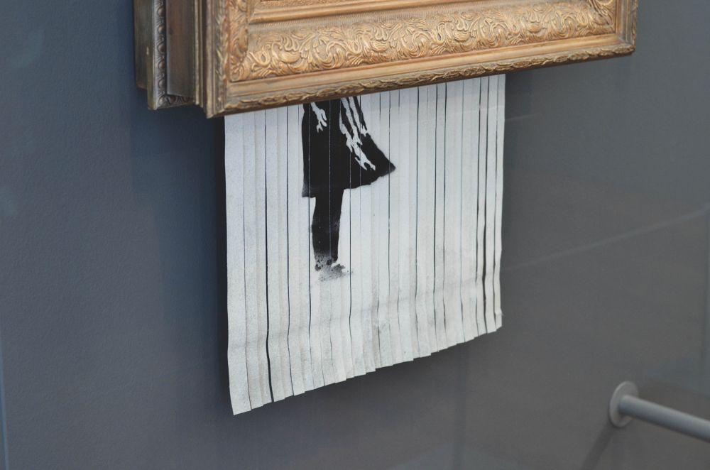 Zu der Brücke-Ausstellung gesellte sich ein weiteres Highlight: Das heiß diskutierte Schredderbild des Streetartists Banksy „Love is in the bin" ist seit Anfang Februar erstmals für die Öffentlichkeit im Hause Burda ausgestellt.