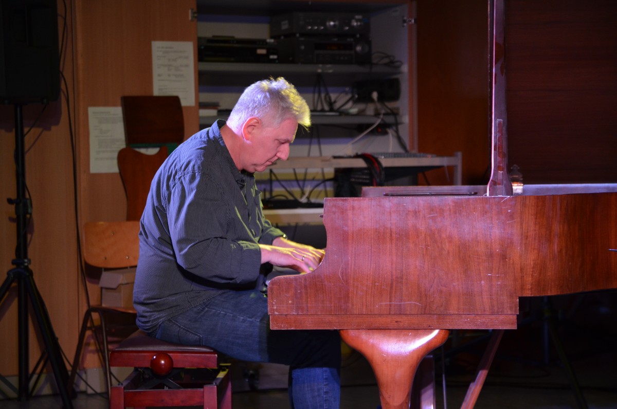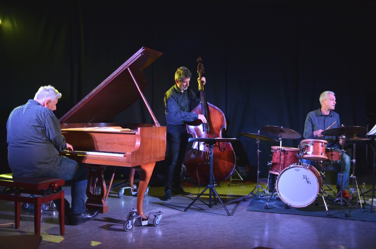 Den zweiten Teil des Abends bestritt dann das Christof-Heringer-Trio. Die drei Instrumentalisten Christof Heringer (Klavier), Matthias Wolf (Bass) und Uli Gessner (Schlagzeug) überzeugten und begeisterten das Publikum mit sieben ausgewählten Stücken, die stilistisch eine große Abwechslung boten. Christof Heringer, aus dessen Feder diese Stücke stammen, mischt verschiedene Jazz-Stile mit Einflüssen aus klassischer Musik, aber etwa auch mit orientalisch angehauchten Klängen. Langeweile kommt da beim Zuhören niemals auf! Matthias Wolf betonte, dass fast alle Stücke an diesem Abend zum ersten Mal öffentlich gespielt wurden.