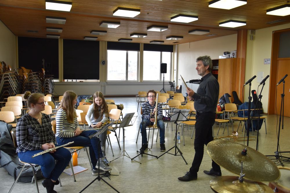 Vom 15.3.19 bis 16.3.19 fand der Jazzworkshop mit dem Christof-Heringer Trio statt. Zum dritten Mal haben wir uns zwei Tage mit dem Thema Jazz und der damit verbundenen Improvisation beschäftigt. Mit viel Geduld und auf uns übergreifender Begeisterung, leiteten die drei Profi-Jazzmusiker zwei Tage voller Proben in unseren Combos. Trotz kurzweiligen Überforderungserscheinungen waren die Ergebnisse mehr als zufriedenstellend und weckten in vielen jungen Musikern die Freude am Jazz.
