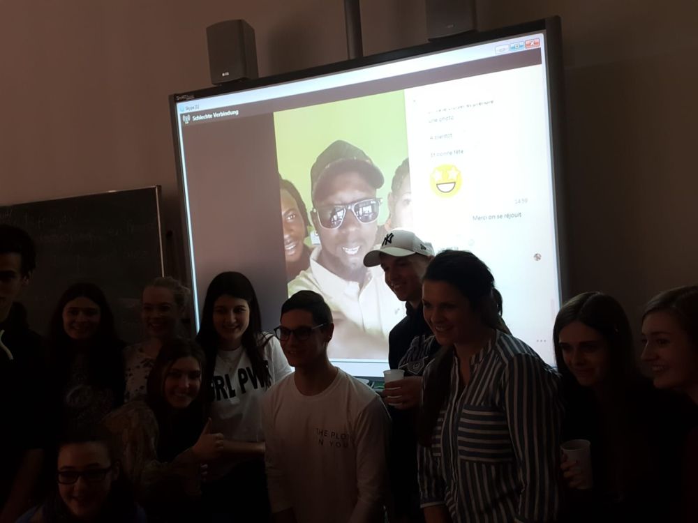 Passend zum sonnigen Wetter gab es bei der Feier zum internationalen Tag der Francophonie viel gute Laune. Diese wurde bereits morgens in den Pausen, in einem, von mehreren Französisch-Klassen schön gestalteten Ambiente, ins Rollen gebracht. Interessierte Schüler und Schülerinnen konnten sich die Pausenzeit bei französischsprachiger Musik (Musik aus den Staaten, welche der Francophonie angehören) auf dem Pausenhof oder in der, mit vielen Plakaten und auch einem Quiz verzierten Aula, vertreiben. Die gute Stimmung wurde dann mittags von dem Französisch Grundkurs der 12ten Klasse weitergetragen. Denn innerhalb des Kurses wurde den Schülern die außergewöhnliche Chance zu Teil, mit einem Burkinabè (einem jungen Mann aus Ouagadougou in Burkina Faso) via Skype zu kommunizieren. Das Gespräch, welches von Frau Spitzer-Weidler organisiert wurde, verhalf zu vielen neuen und aufregenden Erkenntnissen über das Leben in Burkina Faso sowie über Kultur und Politik dieses französischen Bündnisstaates. Zum Highlight des Tages gekürt wurde jedoch das spontan ermöglichte Gespräch mit dem westafrikanischen Topmusiker Bebeto Bongo, welcher sich freudig der interessierten deutschen Klasse, den an ihn gestellten Fragen sowie auch gegenüber seinen Fans zeigte. Nach dem Skype-Telefonat ließen etliche interessierte Schüler und Schülerinnen den Nachmittag bei francophoner Musik, francophonem Essen, sowie auch anderen Schmankerln der francophonen Welt ausklingen.