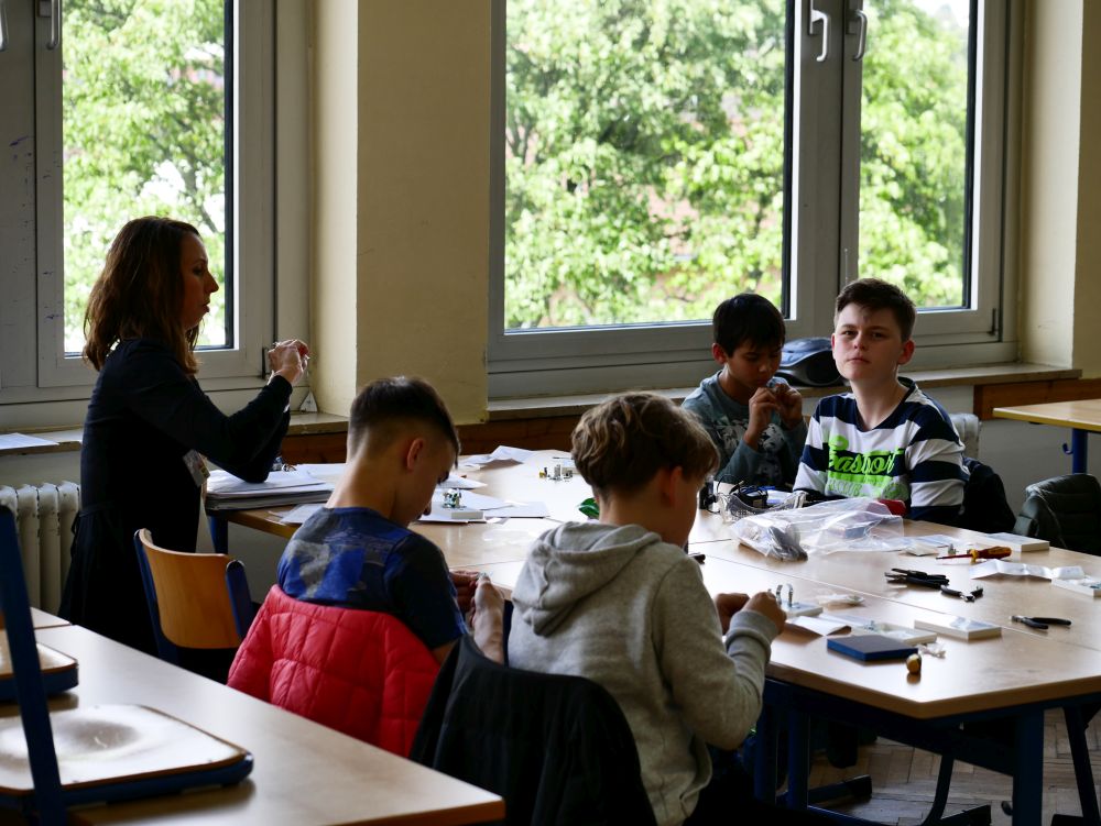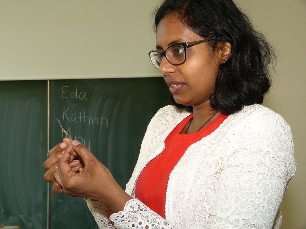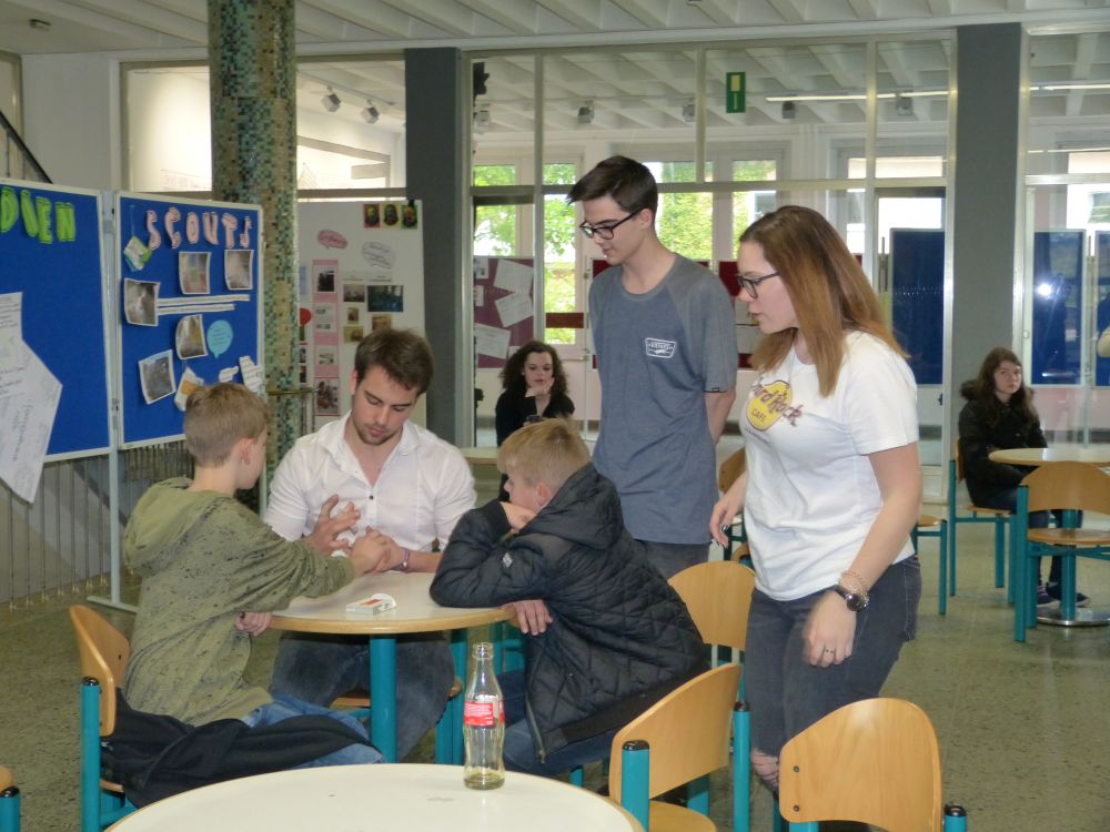 So bestand beispielsweise die Möglichkeit, mit Mikroprozessoren zu arbeiten, Roboter zu bauen und zu steuern, an einer Vogelexkursion teilzunehmen, Schweineaugen zu sezieren, die eigene DNA zu isolieren und, und, und. Um 18 Uhr konnten Eltern, Geschwister, Freunde und Interessierte die Workshops besuchen und die Ergebnisse sichten. Parallel dazu konnten jüngere Schülerinnen und Schüler an einem Vortrag von Herrn Prof. Dr. Thomas Stumm von der Hochschule Kaiserslautern zum Thema „Seifenblasen" teilnehmen und die Faszination, die den bunt, schillernden Seifenblasen innewohnt und die doch so viele Fragen aufwerfen, erleben.