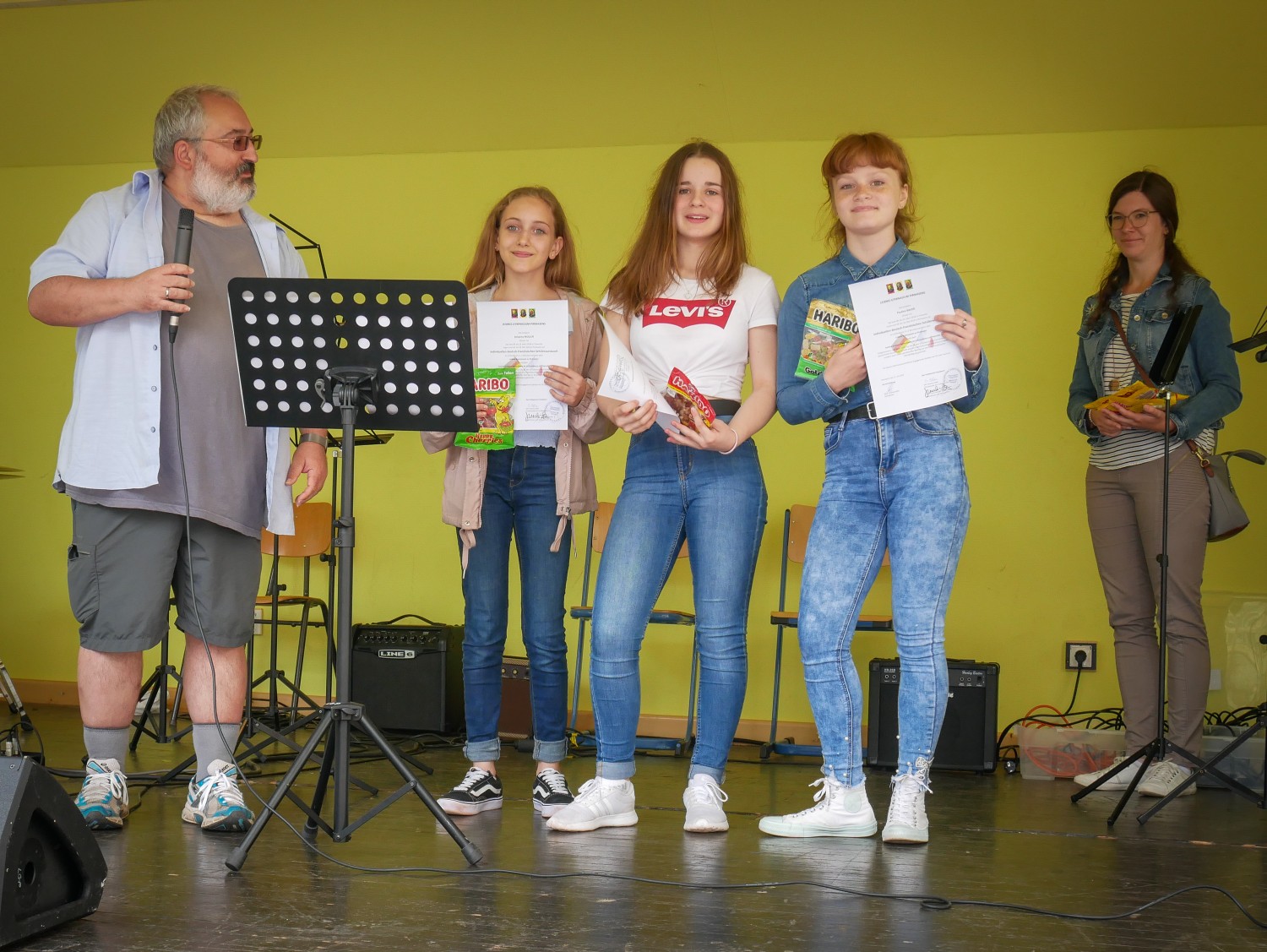 Die Bühne bot auch in diesem Jahr wieder Platz für zahlreiche Ehrungen engagierter Schülerinnen und Schüler und die Auftritte der BigBand-Klassen, der Schulband und des Schulorchesters.