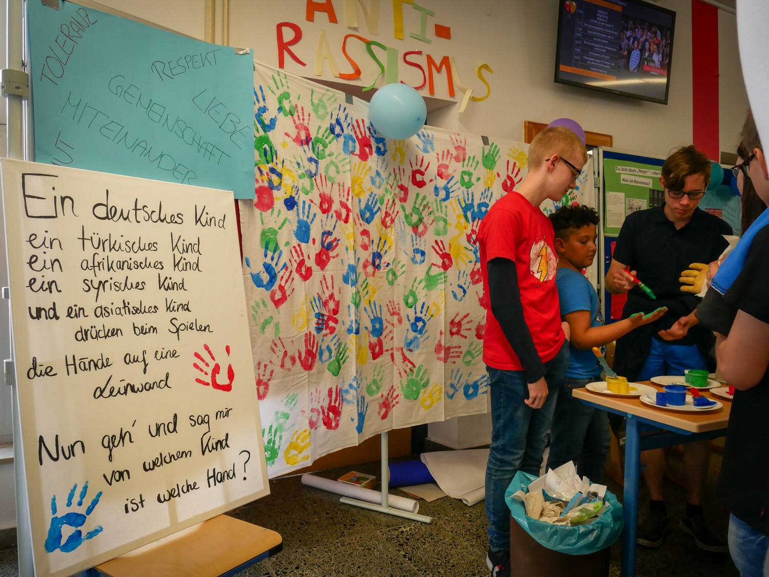 "Filme und Serien" - Unter diesem Motto fand am 15.06.2019 das diesjährige Schulfest des Leibniz-Gymnasiums statt. Die Schülervertretung (unterstützt durch unseren Hausmeister Herrn Schmitt) organisierte diesen gelungenen Tag, an dem die Schulgemeinschaft sowohl bei den Ständen und Aktivitäten als auch auf der Bühne ein attraktives Programm bieten konnte. Die einzelnen Klassen und Kurse sowie die Elternvertretung sorgten nicht nur für ein breit gefächertes kulinarisches Angebot, sondern warteten auch mit interessanten Spielen und Geschicklichkeitswettbewerben auf, sodass es niemandem langweilig werden konnte.