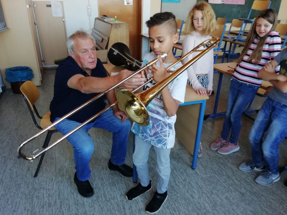 Der diesjährige Startschuss für die Big Band-Klasse in Stufe 5 gab den 21 Teilnehmerinnen und Teilnehmern am Samstagvormittag die Gelegenheit, sich an den angebotenen Instrumenten auszuprobieren und die Instrumentallehrer(innen) der Kreismusikschule schon einmal kennenzulernen. An verschiedenen Stationen im Obergeschoss wurde in Flöten und Klarinetten gepustet, in Trompeten, Saxofone und Posaunen getutet und an E-Gitarre, E-Bass und Schlagzeug schon verdächtig gegroovt. [Mehr...]