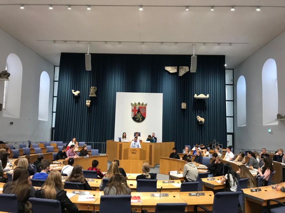 Am Donnerstag, dem 24.10.2019, fuhr die gesamte Klasse 10 des Leibniz-Gymnasiums nach Mainz in den rheinlandpfälzischen Landtag. Dort verbrachten wir den Vormittag im Plenarsaal und führten ein Rollenspiel durch, welches uns die echten Plenarsitzungen der Abgeordneten näher bringen sollte. Wir durften über die Streitfrage "Führerschein ab 16 Jahren" diskutieren, dazu wurden wir alle einer Fraktion zugeteilt, die jeweils eine andere Meinung zu dem Thema hat. [Mehr...]