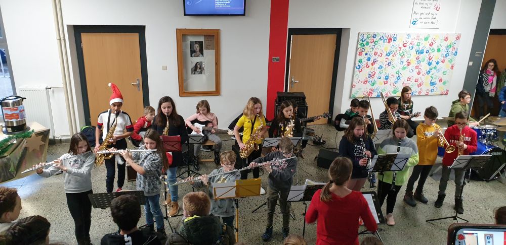 Traditionell hatte die Bigband-Klasse der 5. Jahrgangsstufe am letzten Schultag vor Weihnachten ihren ersten großen Auftritt vor der zahlreich erschienen Schulgemeinschaft. Das dicht gedrängt stehende Publikum bewunderte die beachtlichen Fortschritte der jungen Schülerinnen und Schüler an ihren Instrumenten. [Mehr...]
