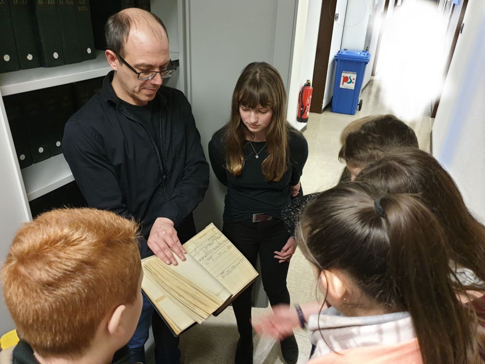 Seit einigen Jahren besuchen die 7. Klassen im ersten Halbjahr ihres Geschichtsunterrichts das Stadtarchiv. Dort wird anschaulich vermittelt, wie man aus historischen Quellen Informationen gewinnt und welche Rückschlüsse man aus der Betrachtung der einzelnen Quellen gewinnen kann. Die Stadtarichivarin Heike Wittmer sagt dazu: „Nur wenn man Quellen richtig interpretiert, hat man Erkenntnisse über die Vergangenheit." [Mehr...]