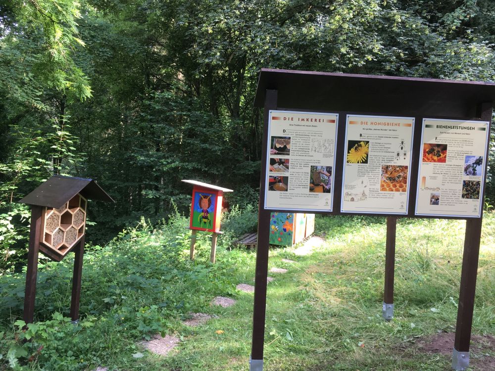 Am Donnerstag Nachmittag hat sich noch gerade rechtzeitig vor den Sommerferien der Mathe-LK M1 unter der Leitung von Frau Laux ans Werk gemacht. Aufgebaut wurden Stellwände mit den Schautafeln des Deutschen Imkerbunds und ein Wildbienenhotel. Der Schaukasten bleibt im Moment unbesetzt, da Unbekannte ständig die Plexiglasscheibe entfernen, weshalb das kleine Schauvolk sich nicht gegen fremde Bienen wehren konnte und ausgeräubert worden ist. Hoffentlich werden die neuen Schautafeln lange halten.