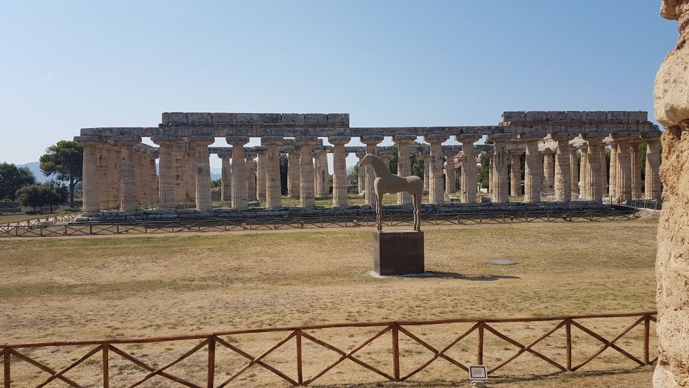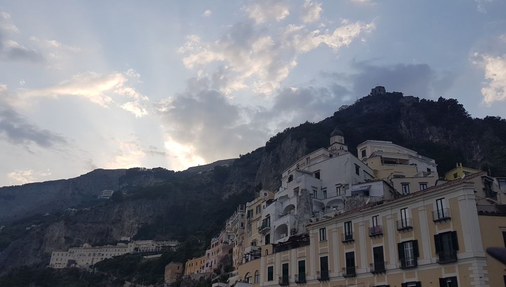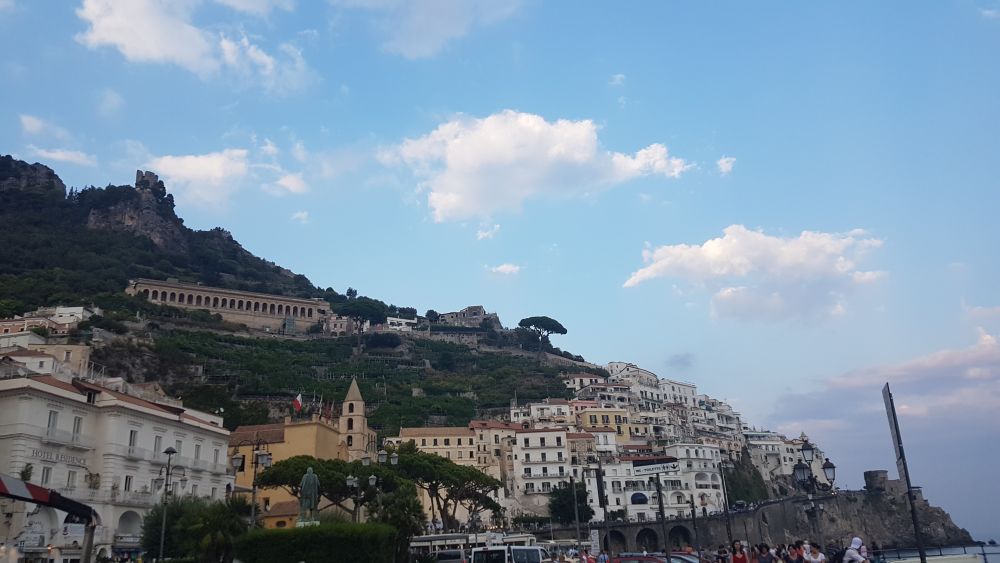 Am dritten Tag waren dann die Tempel und Ruinen von Paestum und die Amalfiküste an der Reihe. Die Busfahrt am schmalen Küstenstreifen war zwar durchaus eindrucksvoll, zehrte jedoch an uns, denn auch an diesem Tag war das Wetter gnadenlos. Umso mehr freuten wir uns auf unseren lang erwarteten Badegang am Strand von Amalfi, nachdem unser Trupp noch kurz durch die Villa Maritima geeilt war. Wiederbelebt konnten wir uns am Ende sogar noch an der Schönheit von Amalfi erfreuen.