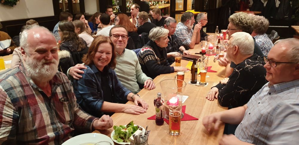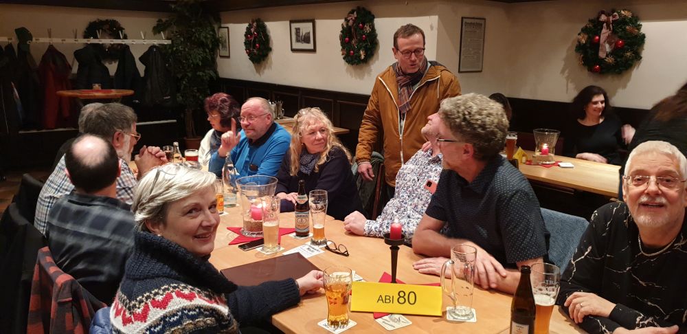 Wie jedes Jahr trafen sich junge und alte ehemalige Schülerinnen und Schüler des Leibniz-Gymnasiums am 27.12.2019 in Kuchems Brauhaus. In weiser Voraussicht hatte der Organisator, Herr Rößler, auch noch Plätze außerhalb des Nebenzimmers reserviert, das ansonsten wieder zu klein für die große Zahl der Teilnehmer gewesen wäre. Erwartungsgemäß stark vertreten waren die aktuellenAbiturienten und Abiturientinnen, aber auch viele bereits seit langem etablierte Jahrgänge nutzten die Gelegenheit zu einem kleinen inoffiziellen Klassentreffen.