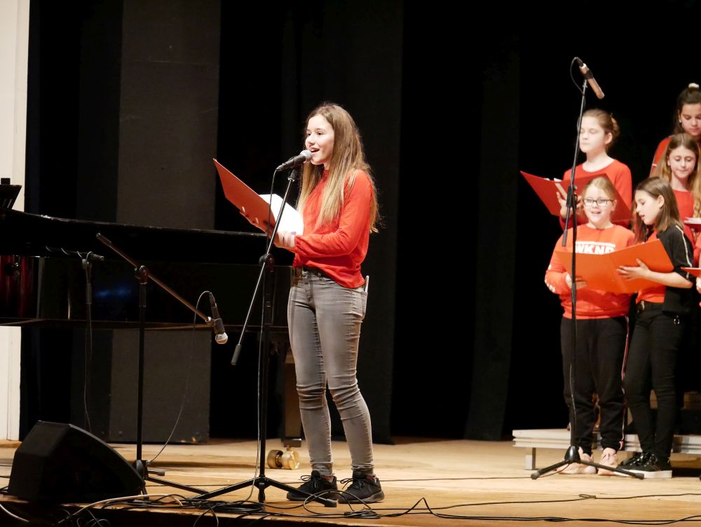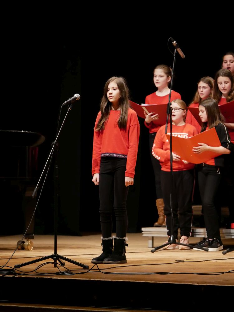 Der Chor der Klassen 5-7 bewies unter der Leitung Herrn Schlatters sein Können. Mit einigen mutigen Solistinnen, die mit guten Solos glänzten, wurde dieses Statement gefestigt. Vor der Pause konnte dann auch noch das Schulorchester zeigen, woran sie in den Proben fleißig gearbeitet hatten. Unter der Leitung von Frau Vehling entließen sie das Publikum mit einem Medley von Grönemeyer dann in die Pause.