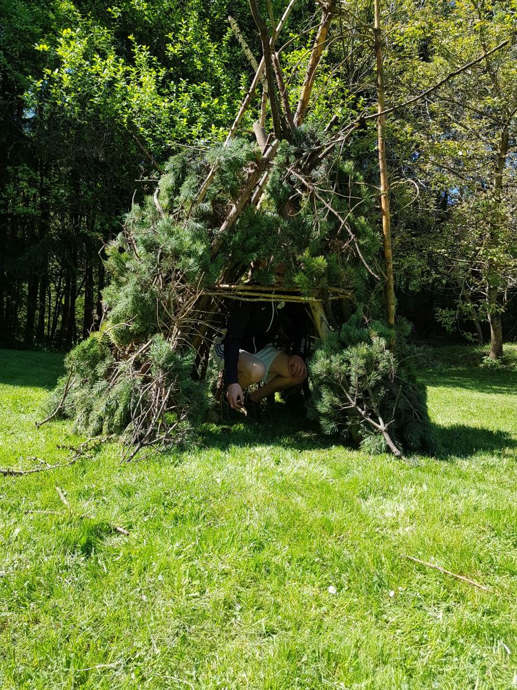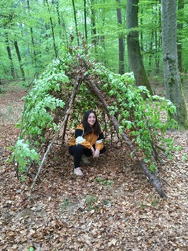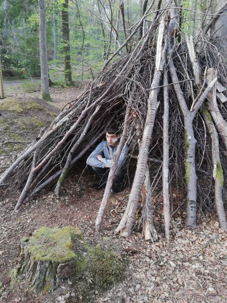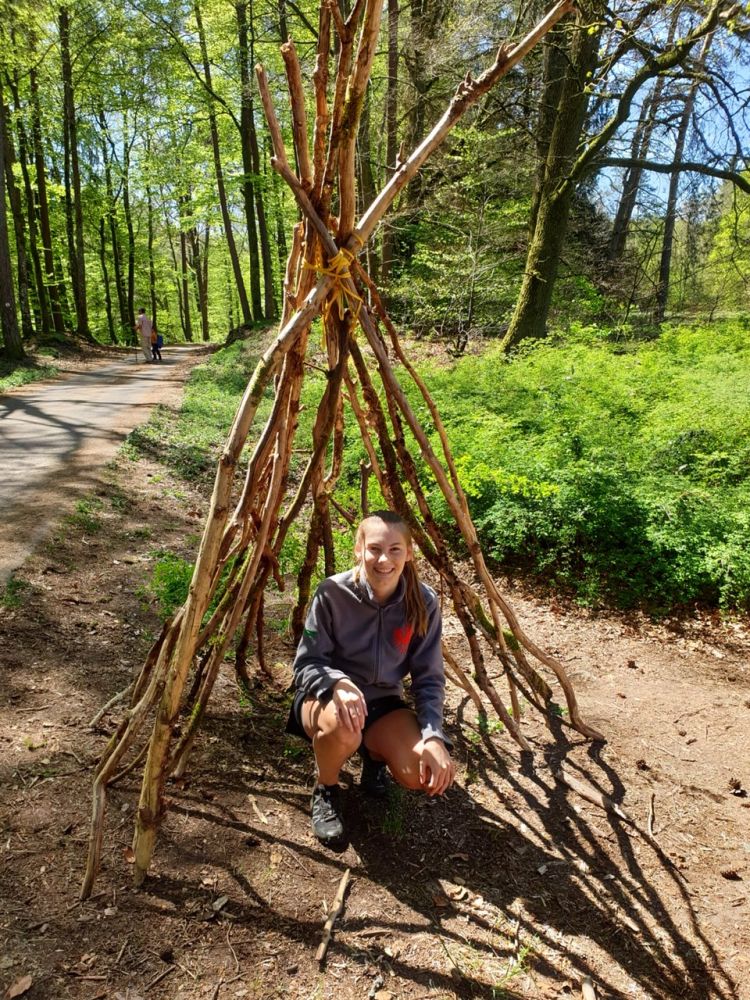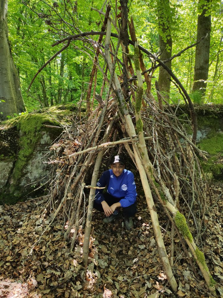 Die Klasse 10b setzt sich seit einigen Wochen mit von Zeltkonstruktionen inspirierter Architektur auseinander. Um Konstruktion und Statik in größerem Maßstab zu erproben, widmeten sich die Schülerinnen und Schüler dem Errichten von Waldtipis.