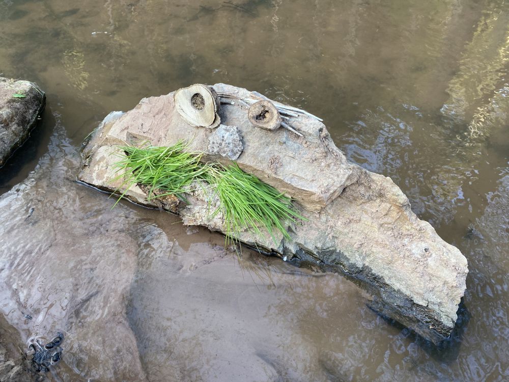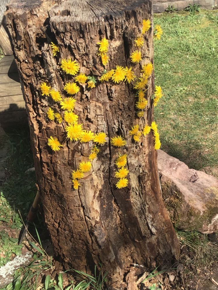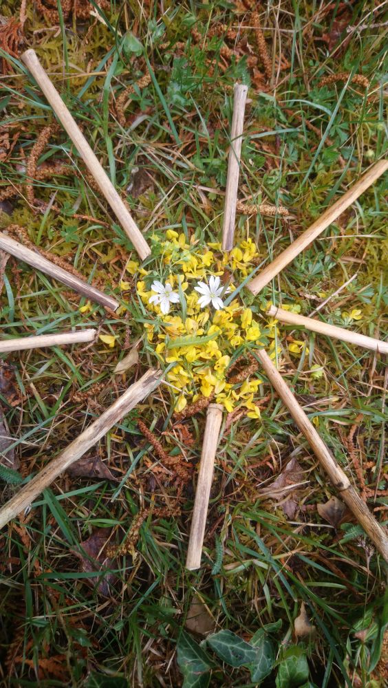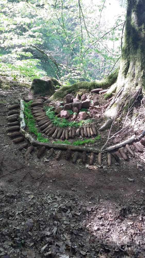 Die Klassen 7a und b setzten sich im Heimunterricht mit dem Landart-Künstler Andy Goldsworthy auseinander und gingen danach selbst hinaus um künstlerische Eingriffe in der Natur vorzunehmen. Im Vordergrund ihrer Arbeiten aus Naturmaterialien standen einerseits die Integration in das vorgefundene natürliche Umfeld, andererseits die Farbenpracht des Frühlings.