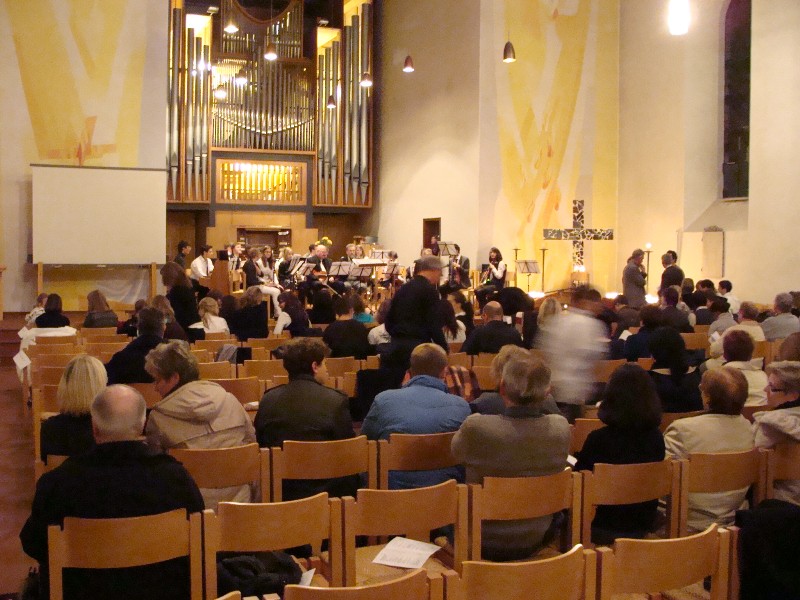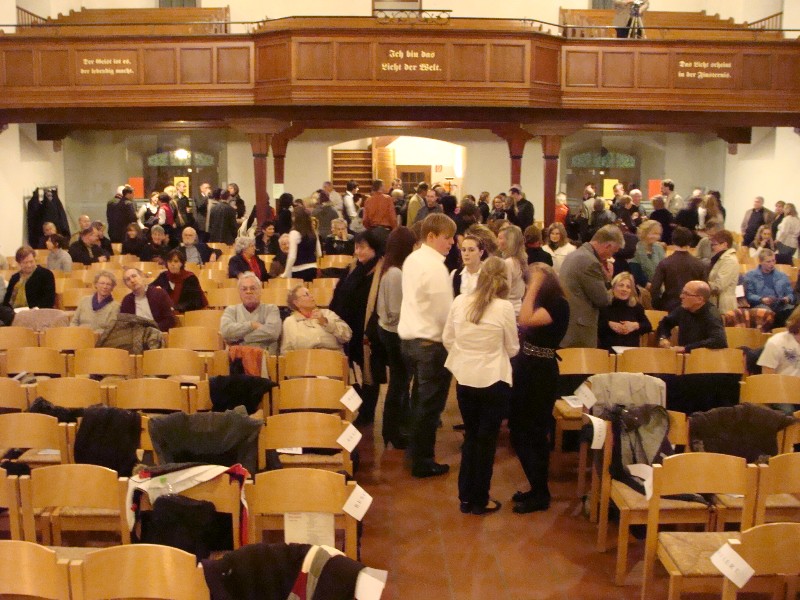 Ein weiteres Mal zeigten die Leibniz-Schüler(innen) beim traditionellen Kammermusikabend ihr musikalisches Können der Tradidtion folgend im instrumentellen Bereich, aber auch der Chor präsentierte sich wirkungsvoll im gewohnten Rahmen der Johanneskirche. Neben Pauken und Trompeten dominierten die Klavierbeiträge, auch im Zusammenspiel mit der Klarinette. Ein besonderes Highlight, das nur in der Johanneskirche möglich ist, waren die Stücke, die auf der gerade renovierten Orgel dargeboten wurden. Das Schulorchester wagte sich an die "Moldau" und wurde visuell ergänzt von einer von den Schülern erstellten Präsentation mit Hintergrundbildern. Der Schulchor ließ bei "Lobe den Herrn" unter Anleitung von Herrn Konrath auch das Publikum mitsingen. Auch Ehemalige und Gäste wirkten mit. Die Elternschaft sorgte wieder für das leibliche Wohl.