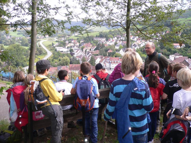 Herr Ringeisen, Leiter des Forstamtes Westrich, informierte unsere Schülerinnen und Schüler umfassend über z.B. den Stockwerkaufbau im Mischwald und die Humusbildung. [Schülerbericht] von Nathalie, Sidney und Hannah aus der 7c.