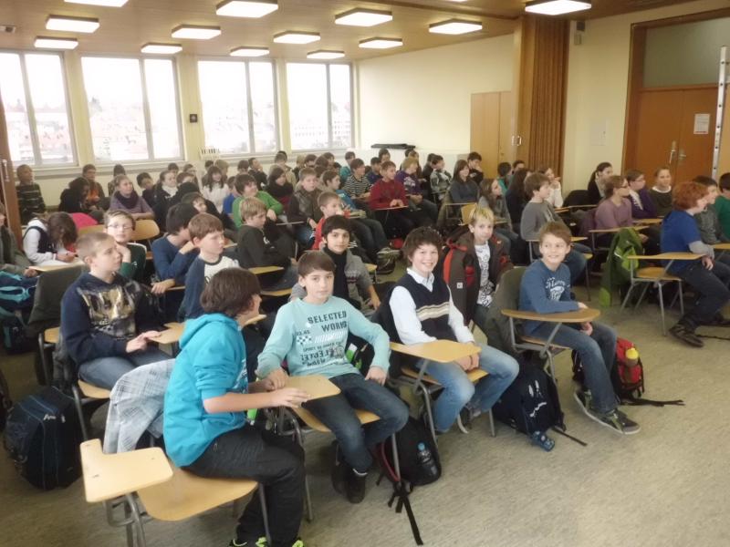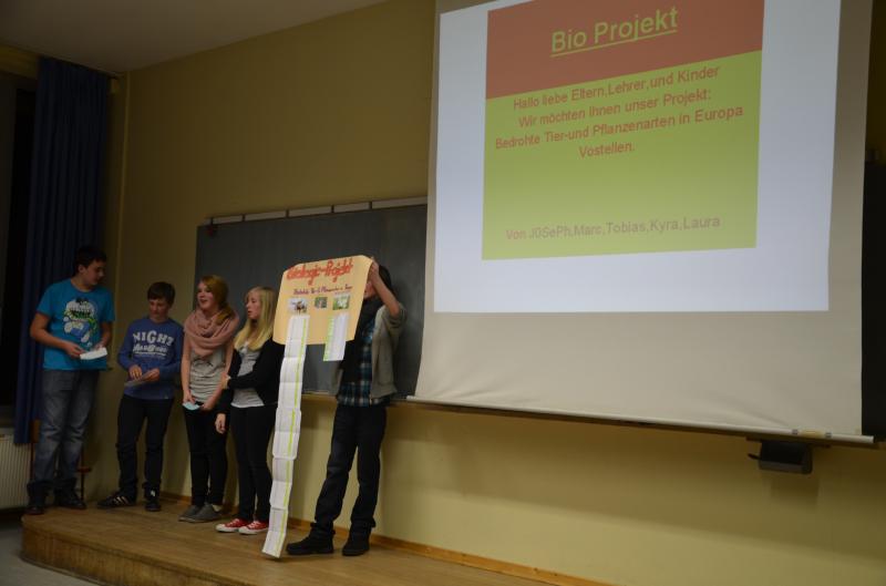 Am Dienstagabend präsentierten 80 Schüler der Jahrgangsstufe 7 dem Publikum ihr Können in der Vortragskunst. Unter dem Oberthema "Europa" bewiesen sie mit kurzweiligen Präsentationen und Kreativreferaten durch freies Reden, den Einsatz moderner Medien, durch selbstgebastelte Modelle und kurze Theaterszenen ihre Methoden- und Kommunikationskompetenz. Neben der Anschaulichkeit übten sich die 13-Jährigen auch in den Formen einer professionellen Moderation: formelle Begrüßung des Publikums, gegliederte Vorstellung eines Themas, Überleitungen sowie Abmoderation. [Mehr ...]