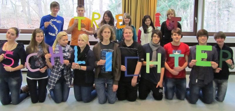 Nach einer zweitägigen Ausbildung unter Leitung von Frau Sparn und Herrn Dr. Flegel stellen sich [hier] die neuen Streitschlichter vor.