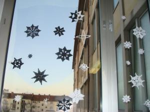 Frau Gottert hat mit den Lateinern der 6. Klassen Schneeflocken gebastelt und zwei Fenster dekoriert. Auch im Sekretariat kann man wieder eine Deko von ihr bewundern. Frau Fissler hat das Motiv für unsere diesjährige Weihnachtsgrußpost entworfen.