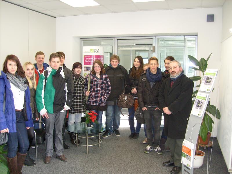 Mit Französisch hat man bessere Chancen auf dem Arbeitsmarkt: Die deutsche Wirtschaft sucht Mitarbeiter mit Französischkenntnissen.", hört man häufig von Französischlehrern und Berufsberatern der Arbeitsagenturen. Doch wie sieht das konkret in der Praxis aus? Wer benötigt wann für welche Arbeitsabläufe Französischkenntnisse in einem Unternehmen? Hierüber informierten sich am 26. Januar 12 Schüler der Klasse 10a (Französisch als 1. Fremdsprache) mit ihrem Französischlehrer, Herrn Günther-Spohr, bei einem Besuch der Firma DELTA DORE Schlüter GmbH in Landau. [Ausführlicher Bericht]