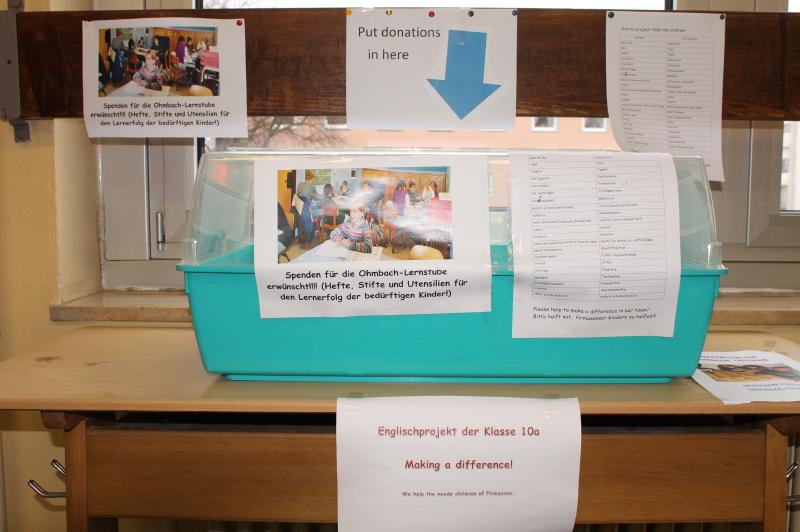 Hilfsprojekt der 10a für die Kinder der Lernstube Ohmbach