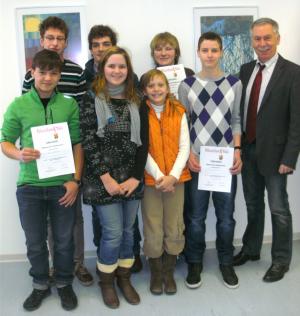 Schulleiter Dieter Kallenbach mit den Preisträgerinnen und Preisträgern