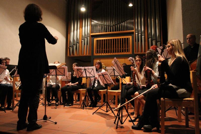 Ein weiteres Mal zeigten die Leibniz-Schüler(innen) beim traditionellen Kammermusikabend ihr musikalisches Können. Wieder wurde eine Brücke von der Kammermusik zum Chorgesang geschlagen, da zu den rein instrumentellen Vorträgen ein Programm des Chors der Klassen 5 - 7 hinzukam, arrangiert und geleitet von Herrn Schlatter. Hinzu kamen die Klassen 5c und 6a, die im Klassenverband mitsangen. Die Johanneskirche bot wieder ein Forum in der Nachbarschaft für die vielen musikalischen Talente im instrumentellen, aber auch gesanglichen Bereich. Die Instrumental-AG trat nun bereits im dritten Jahr unter der neuen Leitung von Frau Breum auf und gab wieder den Auftakt zum Abend. Schulleiter Herr Kallenbach begrüßte die Gäste, die ein weiteres Mal in so großer Zahl erschienen waren, dass der Kirchenraum die Mitwirkenden und Gäste kaum fassen konnte. Viele bekannte und neue Interpreten boten ein Programm, in dem Klavier und Gesang dominierten. Die Elternschaft sorgte für das leibliche Wohl in der Pause. Mit Herrn Schlatter hatte dann der Chor der Jahrgänge 5 bis 7 seinen Auftritt. Nach zwei weiteren herausragenden Klaviervorträgen gehörte der Raum dem Schulorchester, das auch wieder von Ehemaligen verstärkt wurde. Das Orchester spielte selbstbewusst sicher und gefiel in diesem Jahr ganz besonders.