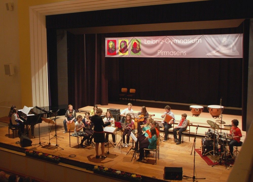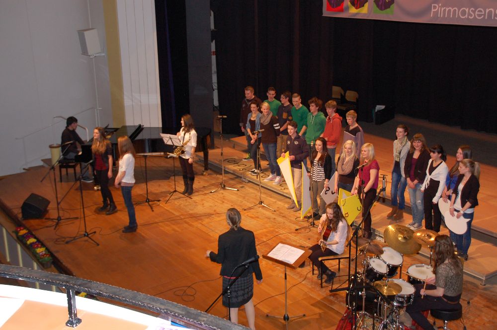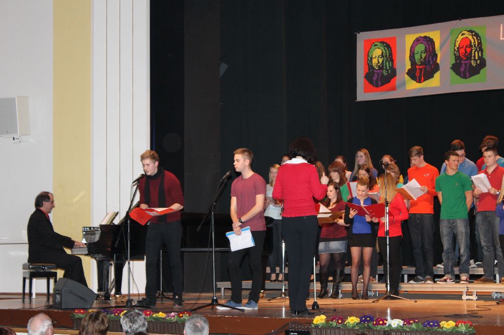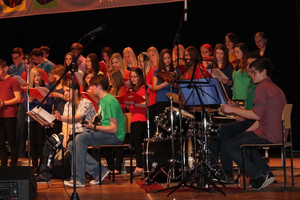 Musikabend 2013 PlakatAm 5. März ab 19 Uhr war die Schulgemeinschaft zum "Jubiläums"-Musikabend in die Festhalle eingeladen. Die Grippewelle riss ein paar Löcher in mitwirkende Gruppen und Zuschauerraum, dennoch war die Festhalle wieder gut gefüllt. In vielen Proben während der letzten Monate hatten sich unsere verschiedenen Musikgruppen auf diesen Abend vorbereitet. Ein abwechslungsreiches Programm war entstanden [hier als pdf], das mit viel Applaus belohnt wurde.