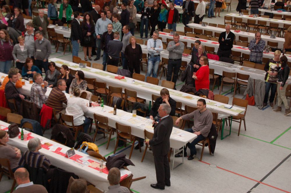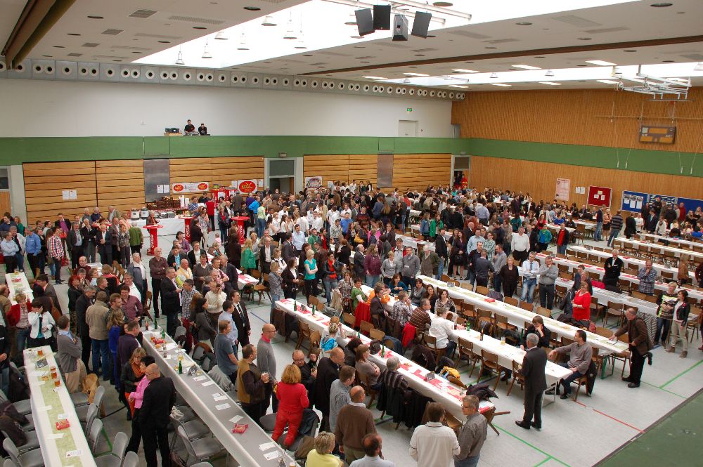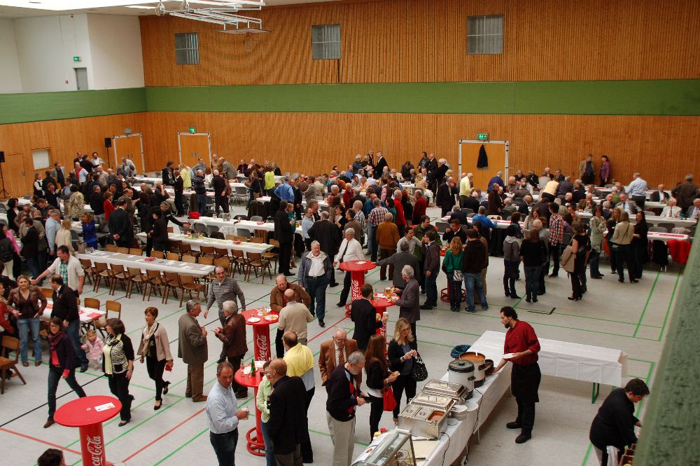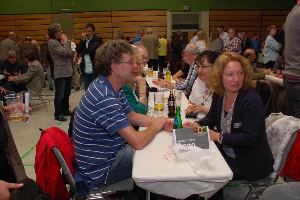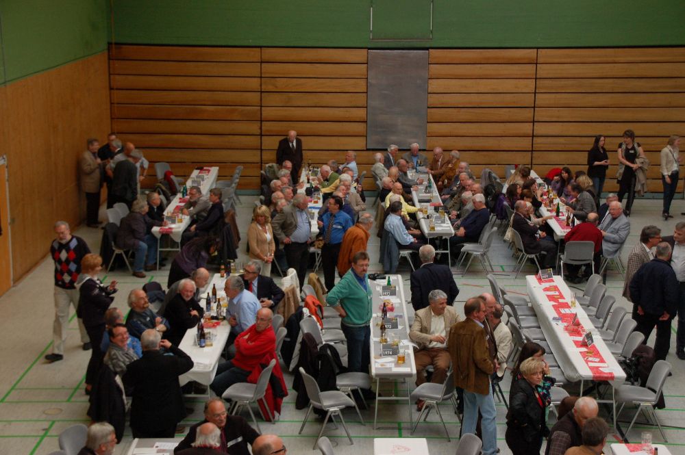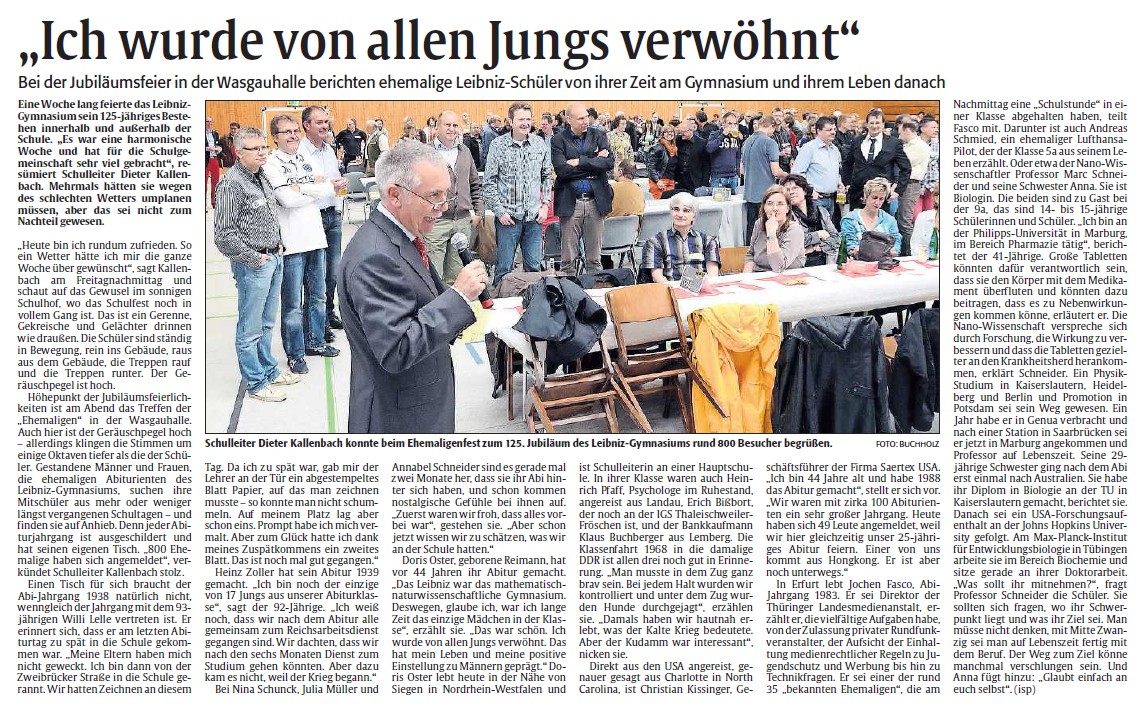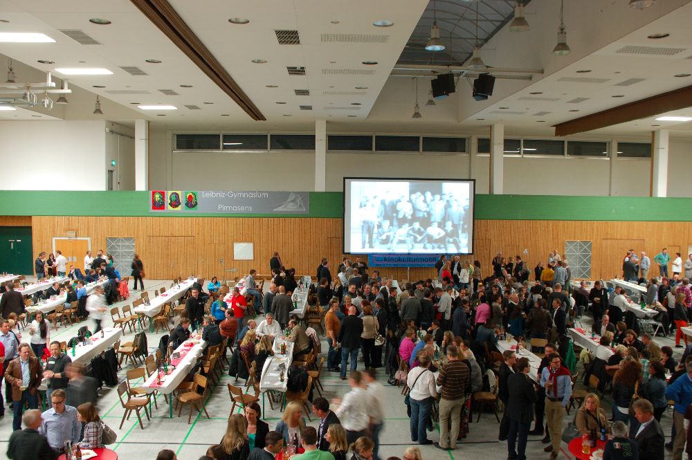 Über 800 "Ehemalige" des Leibniz hatten sich für das große Ehemaligenfest zum 125-jährigen Jubiläum angemeldet (Liste der Jahrgänge siehe unten) und etwa so viele waren auch in die Wasgauhalle gekommen. Herr Kallenbach konnte in seiner kurzen Begrüßung ehemalige Schülerinnen und Schüler aus den Jahrgängen von 1938 bis 2013 begrüßen. Die am weitesten gereisten Teilnehmer kamen dabei aus Neuseeland, Hong Kong und den USA.Sie nutzen die Gelegenheit zu einem ausführlichen Wiedersehen mit ehemaligen Schulkameraden, das bis weit in die Nacht hineinreichte. Einen Bericht der Rheinpfalz vom 27.5.2013 finden Sie neben stehend.