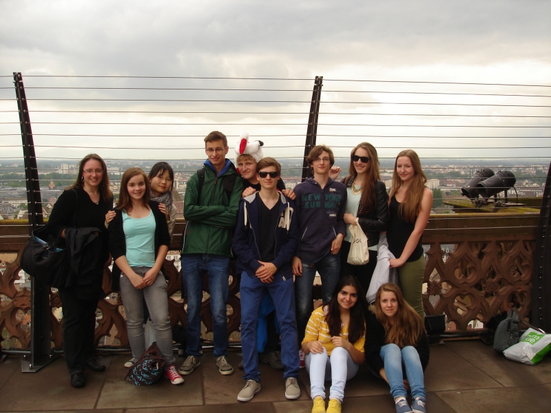 Vor der Abfahrt hatten sich noch 10 tapfere Schüler/innen und Frau Rapp die Wendeltreppe mit 332 Stufen des Münsters hinaufgekämpft, um die tolle Aussicht auf die Stadt zu genießen – was sich ebenfalls sehr gelohnt hat, denn trotz etwas schlechtem Wetter konnte man sogar die Vogesen sehen.