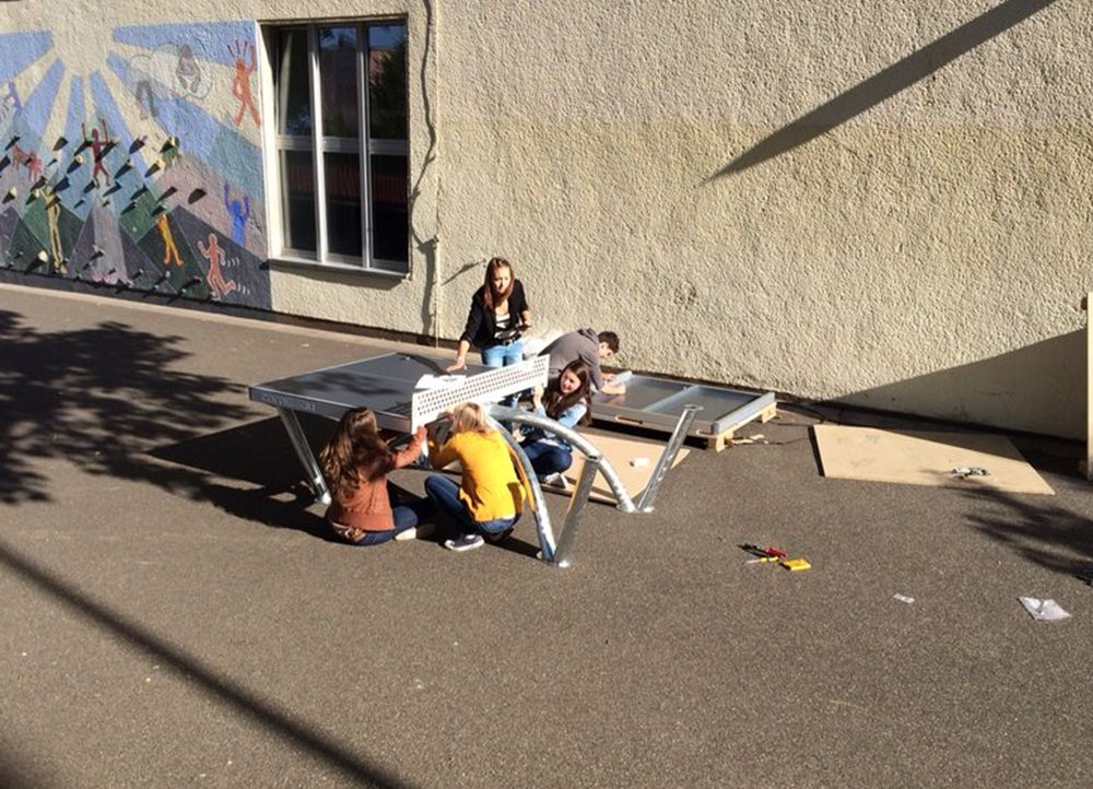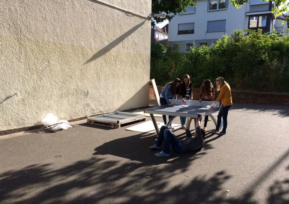 Am Donnerstag, den 26. Juni 2014, kam die lang ersehnte Tischtennisplatte ans Leibniz-Gymnasium.