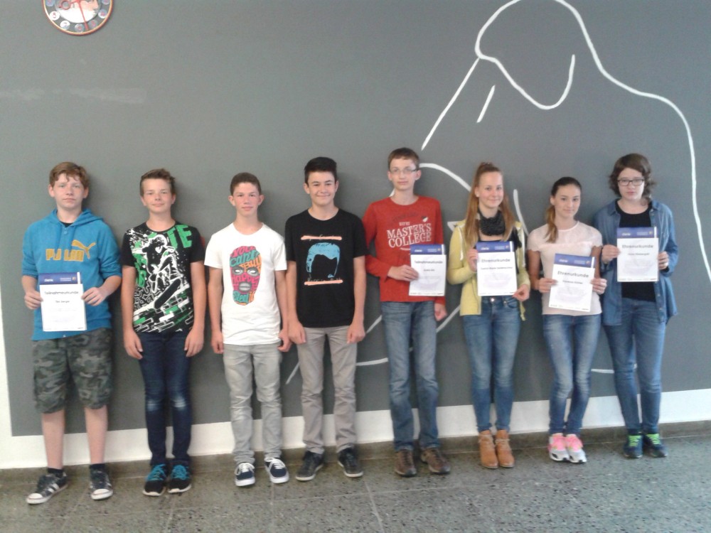 Zehn Schüler(innen) legten das DELF auf der Niveaustufe A2 ab, während vier auf der noch anspruchsvolleren Stufe B1 erfolgreich waren. Die jeweils besten Leistungen erzielten hierbei Carolin Cölsch (Stufe A2) und Eric Bahne (Stufe B1). [Mehr...]