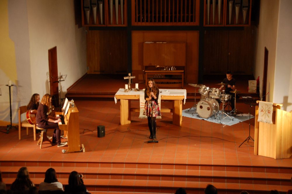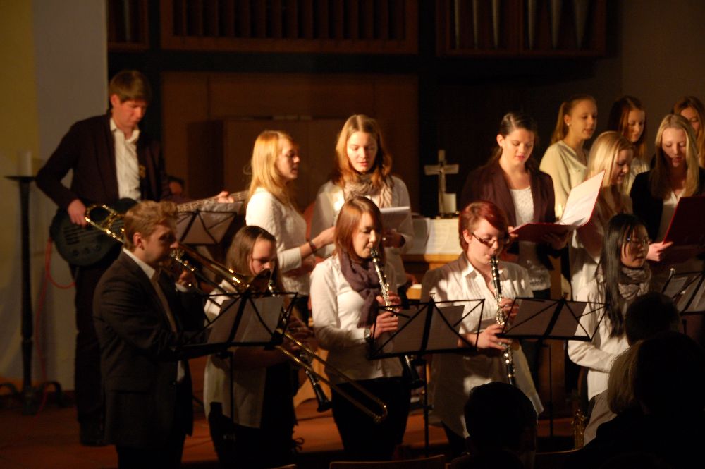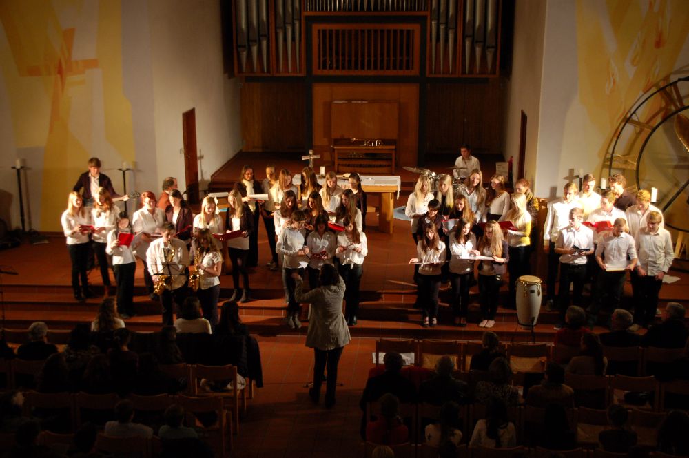 Viele Schüler(innen) zeigten ihr musikalisches Können: als Einzelinterpreten an Klavier, Querflöte oder Saxophon, als Gruppe in der Band oder als Mitglied bei den Gesangsvorträgen der 6a und des Schulchors. Die Johanneskirche bot wieder den passenden Rahmen für eine gelungene Veranstaltung. Vielen Dank an alle Mitwirkenden, insbesondere an die Organisatoren aus dem Kollegium! Das Plakat gestaltete Frau Fissler unter Verwendung einer Vorlage von Nils Fitting.