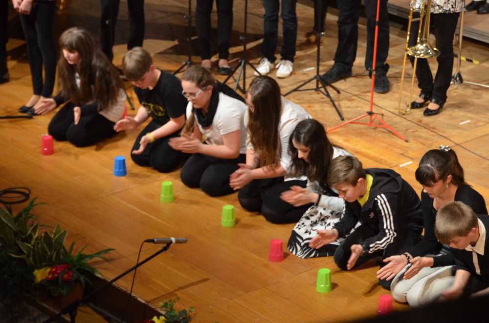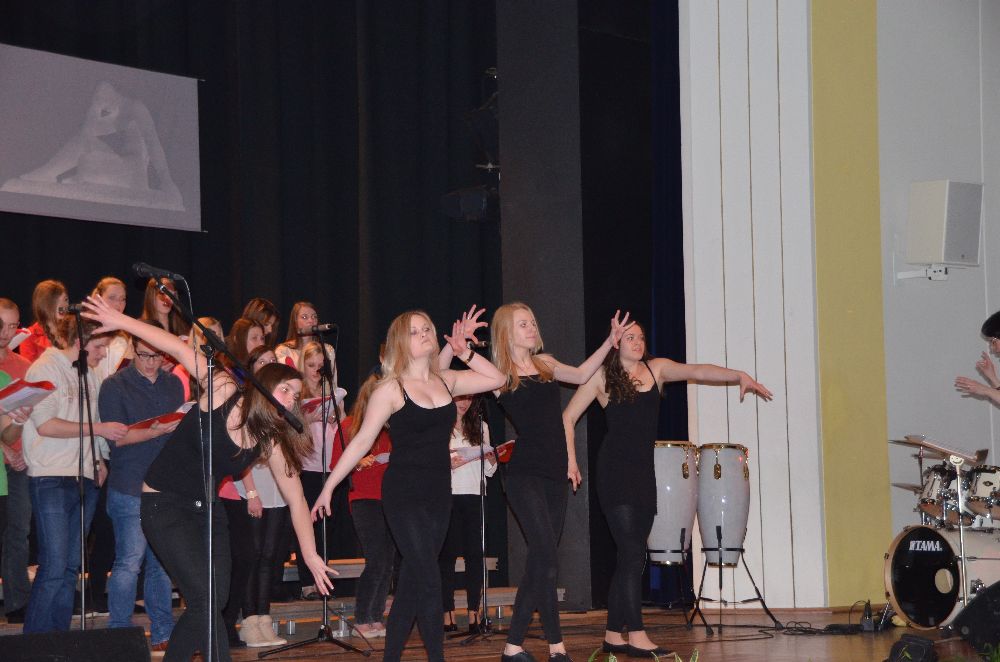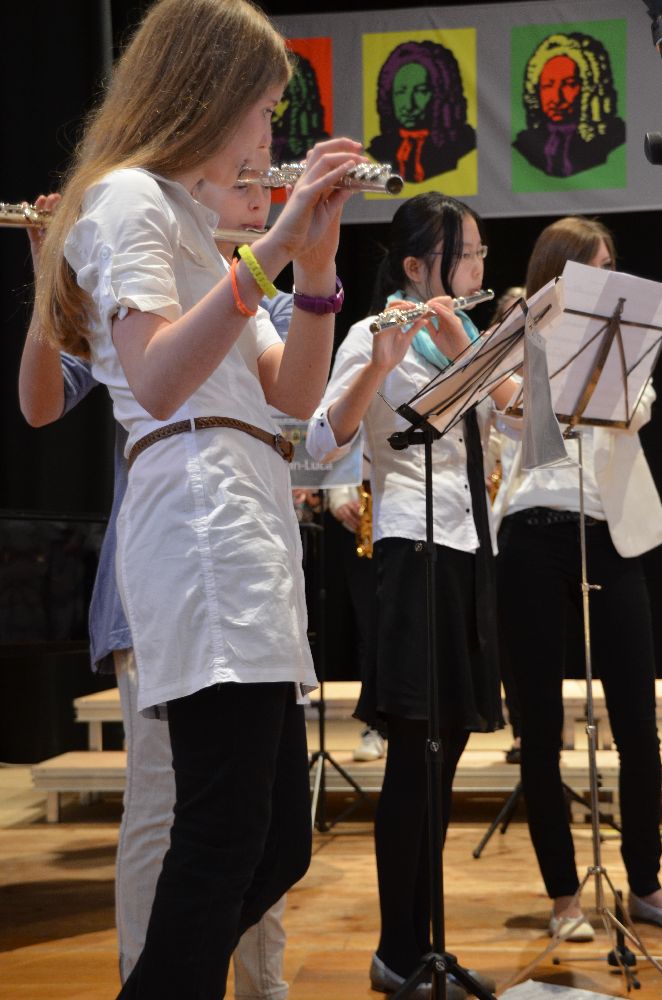 Das Leibniz hatte wieder zum traditionellen Musikabend in die Festhalle eingeladen. Das Programm wurde von verschiedenen vokalen und instrumentalen Arbeitsgemeinschaften der Schule getragen, die sich zum Teil auch neu formiert zum ersten Mal präsentierten. Im Gegensatz zu dem eher klassisch orientierten Kammermusikabend bot das Programm des Schulkonzerts unter anderem Bearbeitungen verschiedener Pop-Klassiker, aktueller Hits und auch Musicalmelodien.