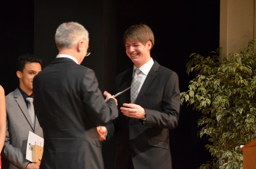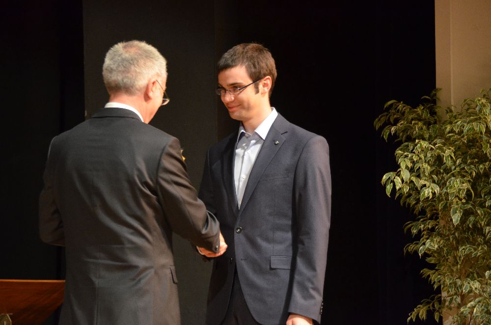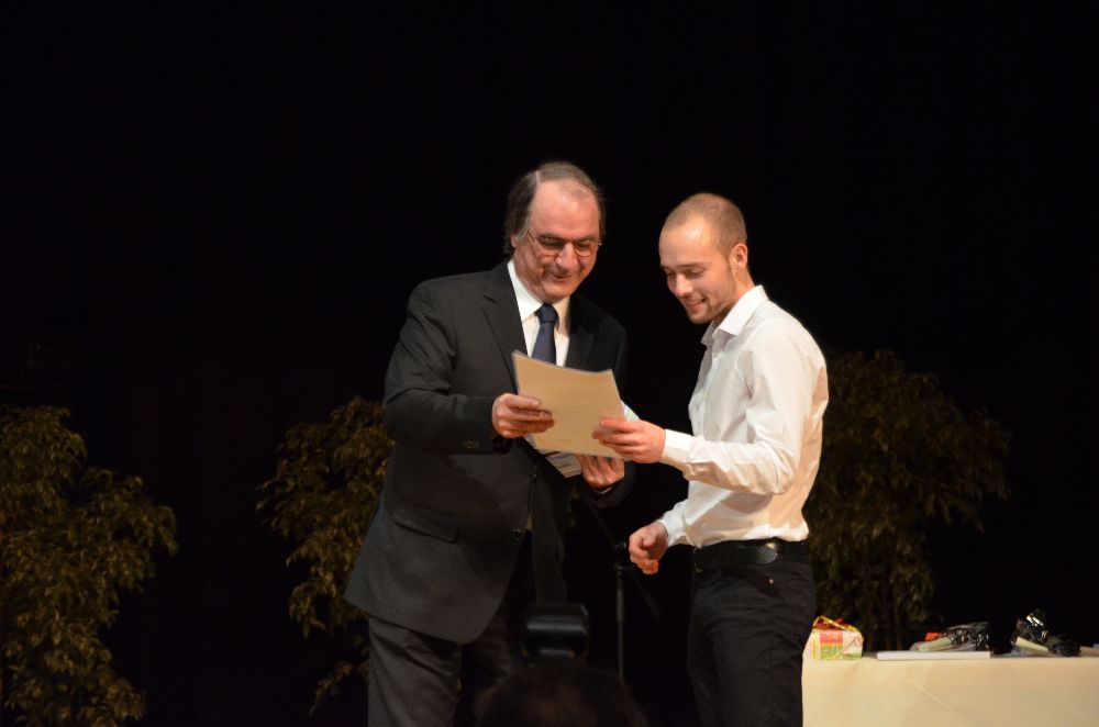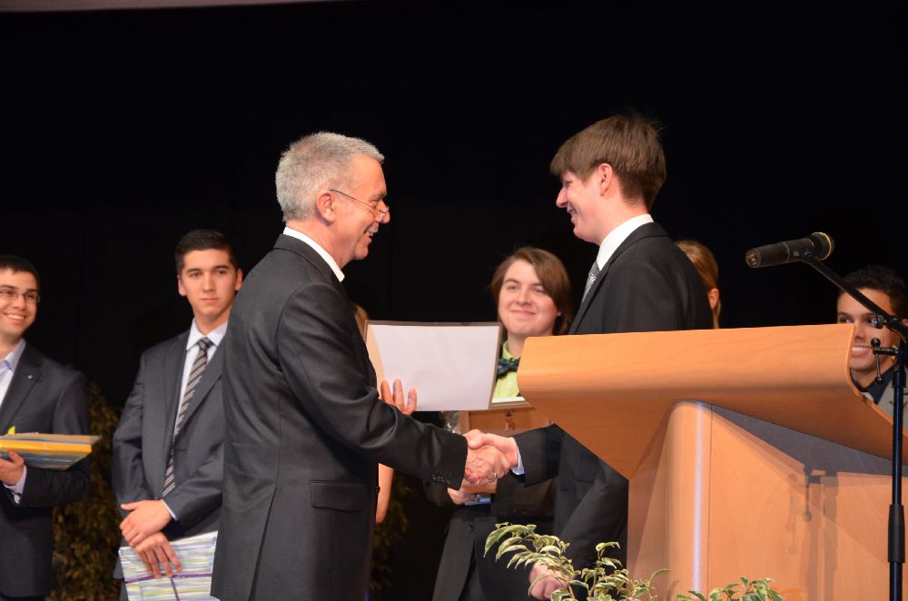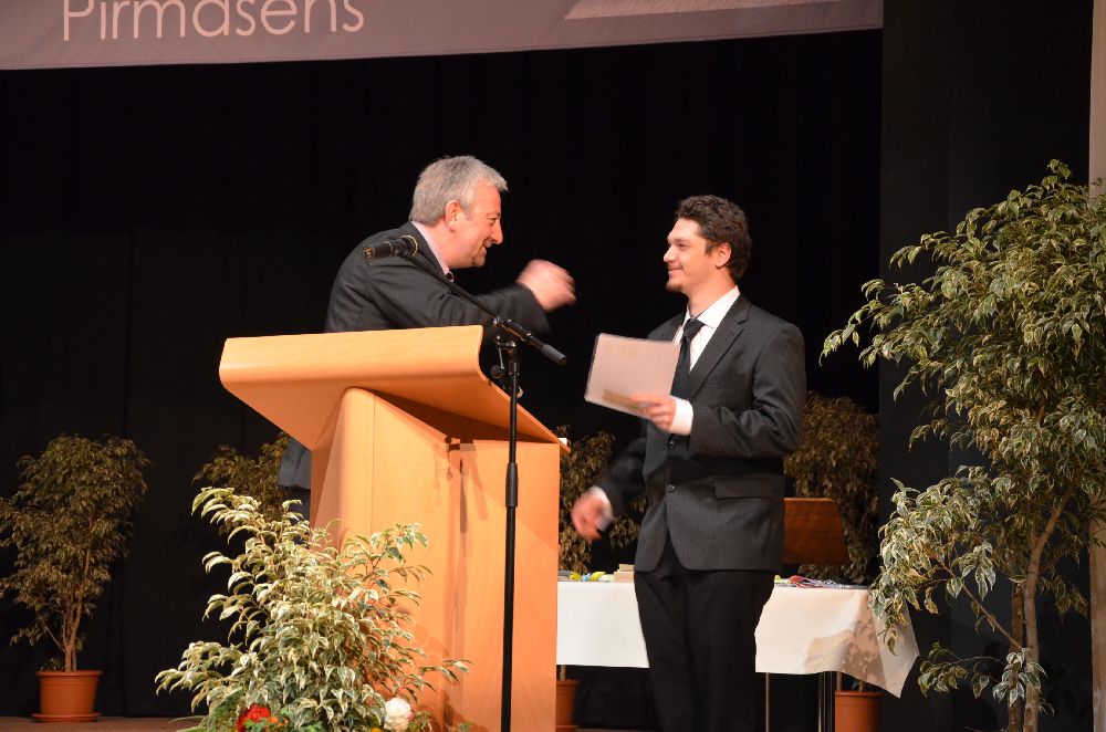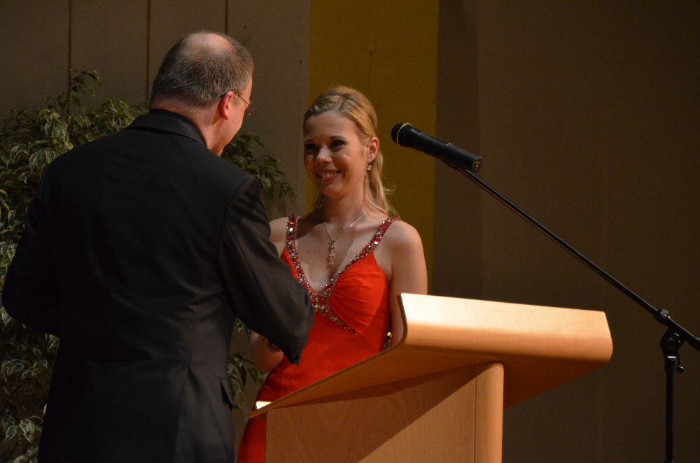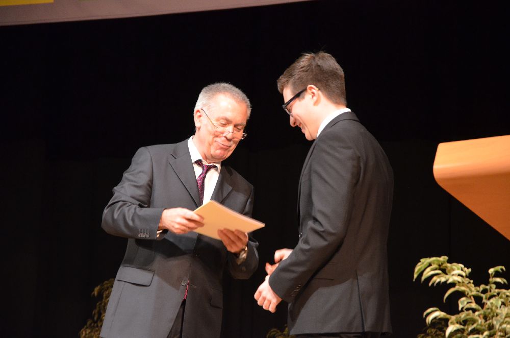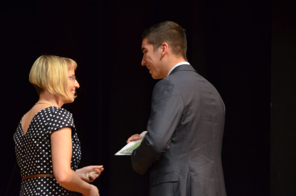 Nach einem Klavierstück, dargebracht vom Slodki-Preisträger Philipp Cölsch, begrüßten Niclas Ludy und Lars Ruprecht die Schulgemeinschaft. Die Ansprache des Schulleiters Herrn Kallenbach schloss ein weiteres Klavierstück von David Ranzinger ab. Nach der Zeugnisausgabe gab es wieder viele Preise zu vergeben, die dieses Jahr an 15 Schülerinnen und Schüler der Jahrgangsstufe überreicht werden konnten. Vertreter der Stadt, der Kirchen, des Schulelternbeirats, des Fördervereins und der Firma Convar übergaben persönlich die von ihnen gestifteten Preise. Den Abschluss des offiziellen Teils bildeten die sehr persönlichen und teils auch nachdenklichen Abschiedsworte der Abiturienten (Lisa Jennewein und Philipp Cölsch), bevor Kevin Klar und David Ranzinger musikalisch die Zuhörer an das Buffet entließen. Im inoffiziellen Teil zeigte die Jahrgangsstufe noch einmal ihr breites Können - von Pop- über Rapmusik, Tanzeinlagen bis zum abschließenden Männerballett wurde Unterhaltung geboten.