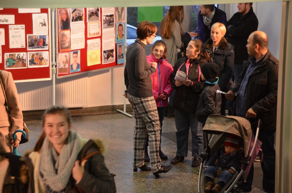 Wie im letzten Jahr verzögerte der Novembermarkt in der Schloßstraße die Anfahrt zur Schule - die zentrale Informationsveranstaltung im Musiksaal begann leicht verspätet. Schulleiter Herr Kallenbach informierte über die besonderen Unterrichts- und Lernangebote und Orientierungsstufenleiter Herr Clemenz stellte das "LeKo"-Konzept vor - als Teil der Bemühungen, mit dem das Leibniz den Übergang an das Gymnasium erleichtern will.