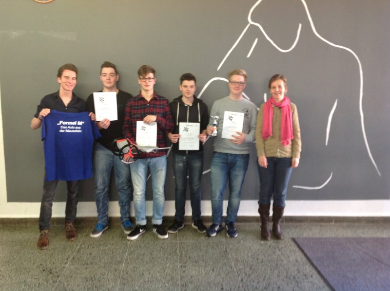 Die Fahrzeugkonstrukteure Leon Müller, Moritz Preiß, Patrick Kern, Philipp Reiser und Jonas Peifer aus der Klasse 10c landeten mit ihrem Fahrzeug im oberen Mittelfeld. Eine bessere Platzierung war ihnen leider an diesem Tag verwehrt, da einmal das Fahrzeug in voller Fahrt die 1,50m breite Fahrstrecke verließ und es bei der zweiten Fahrt nach einer kurzen Strecke unergründet stehen blieb. Die Enttäuschung wurde jedoch bei der Siegerehrung wieder verändert, als das Team den Designpreis für das bestaussehende Mausefallenauto überreicht bekam. Das Team „Alapha" wurde während den zwei Monaten des Erbauens von ihrer Physiklehrerin Frau Dury unterstützt.